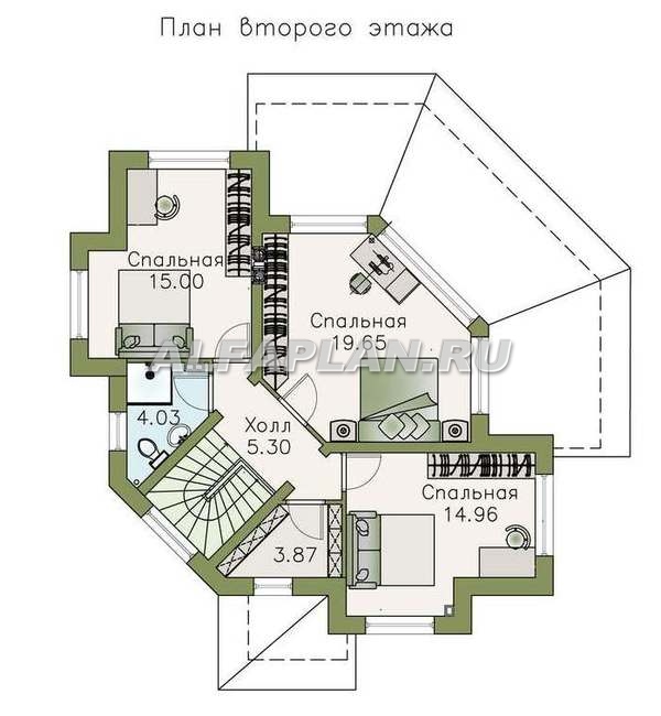 На сайте Alfaplan.ru, где вы сможете посмотреть и другие варианты домов коллекции «Баттерфляй» с диагональными планировочными решениями.