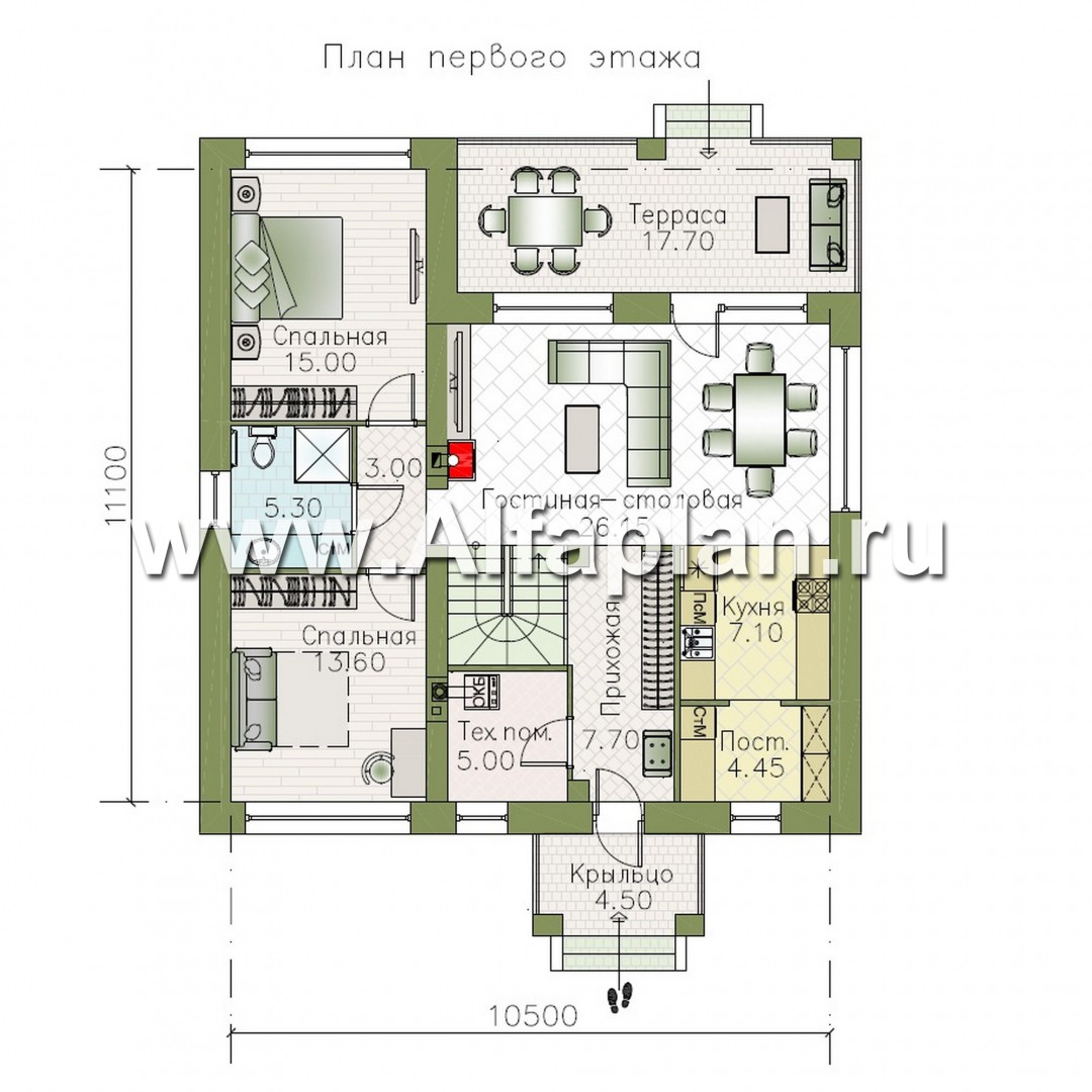 «Перспектива» - проект дома с мансардой, с террасой, с мансардными окнами