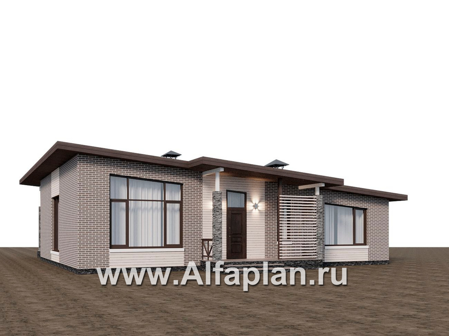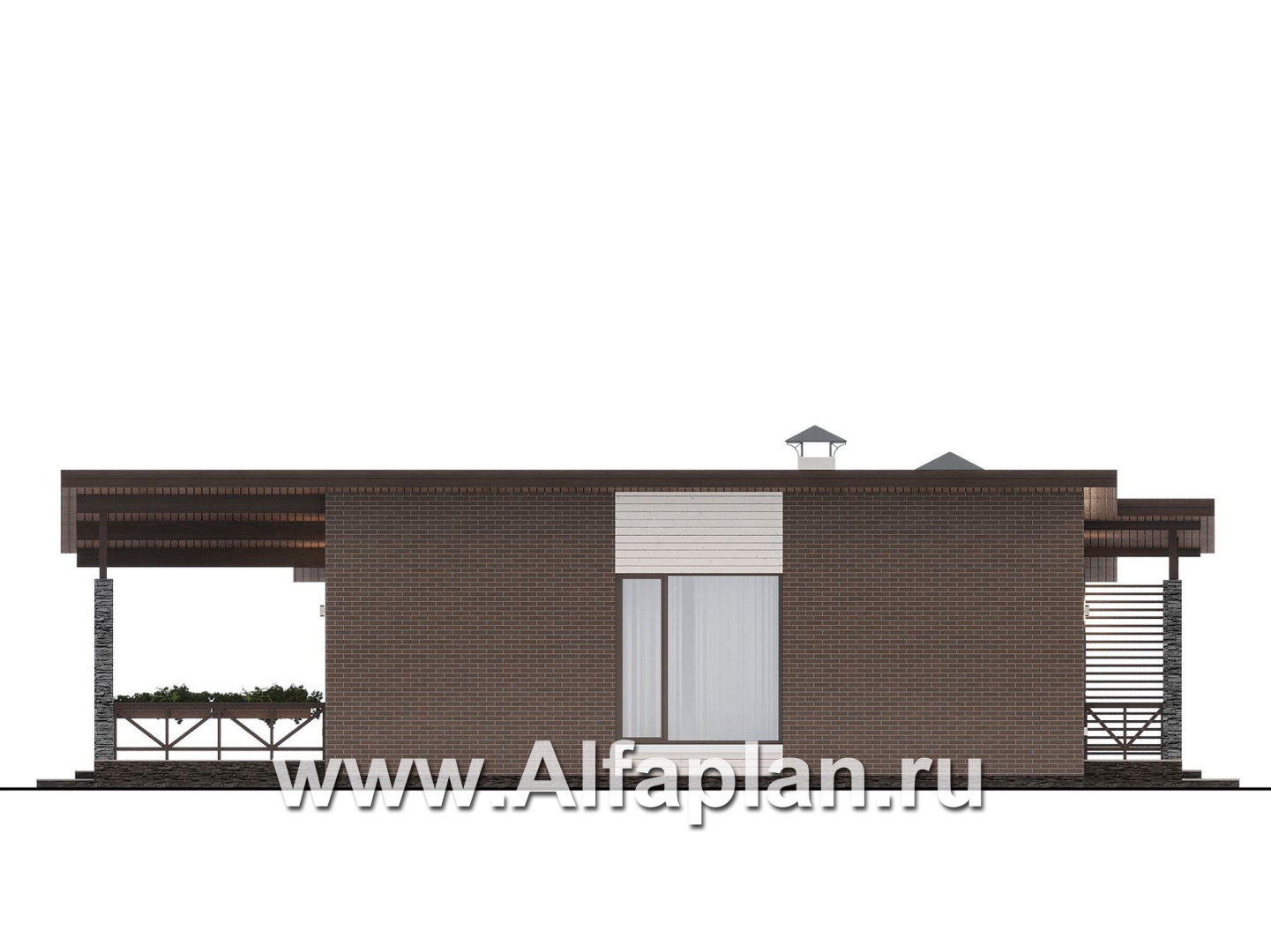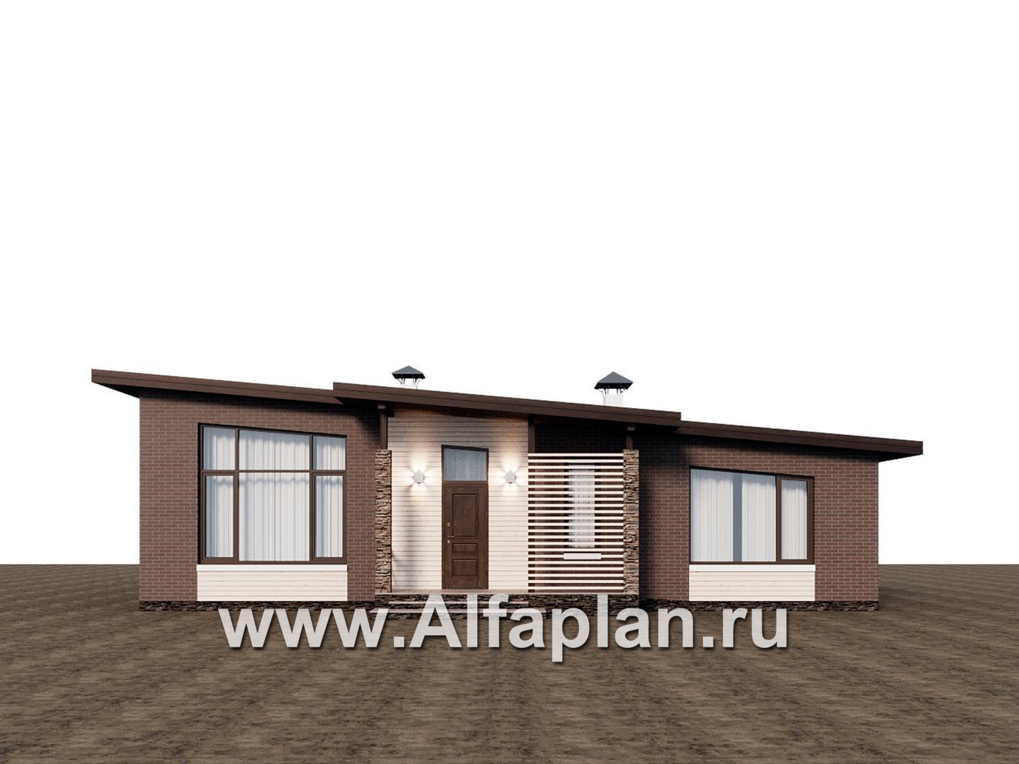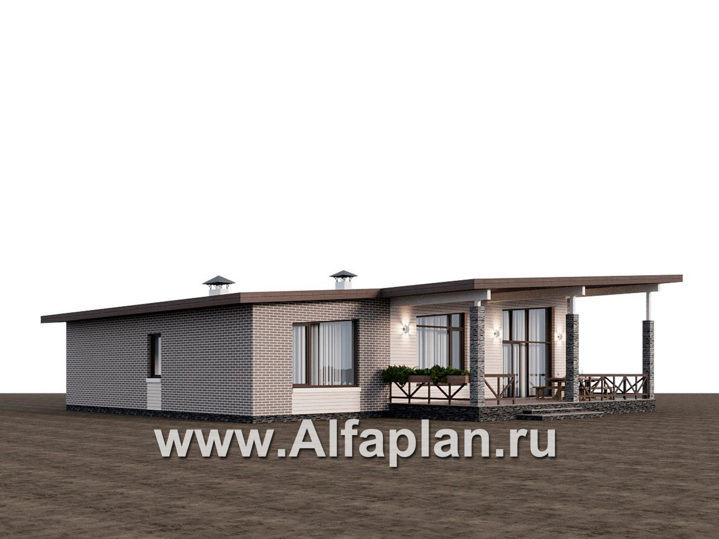 «Стрелец» -проект современного одноэтажного дома с террасой со стороны входа, с односкатной крышей