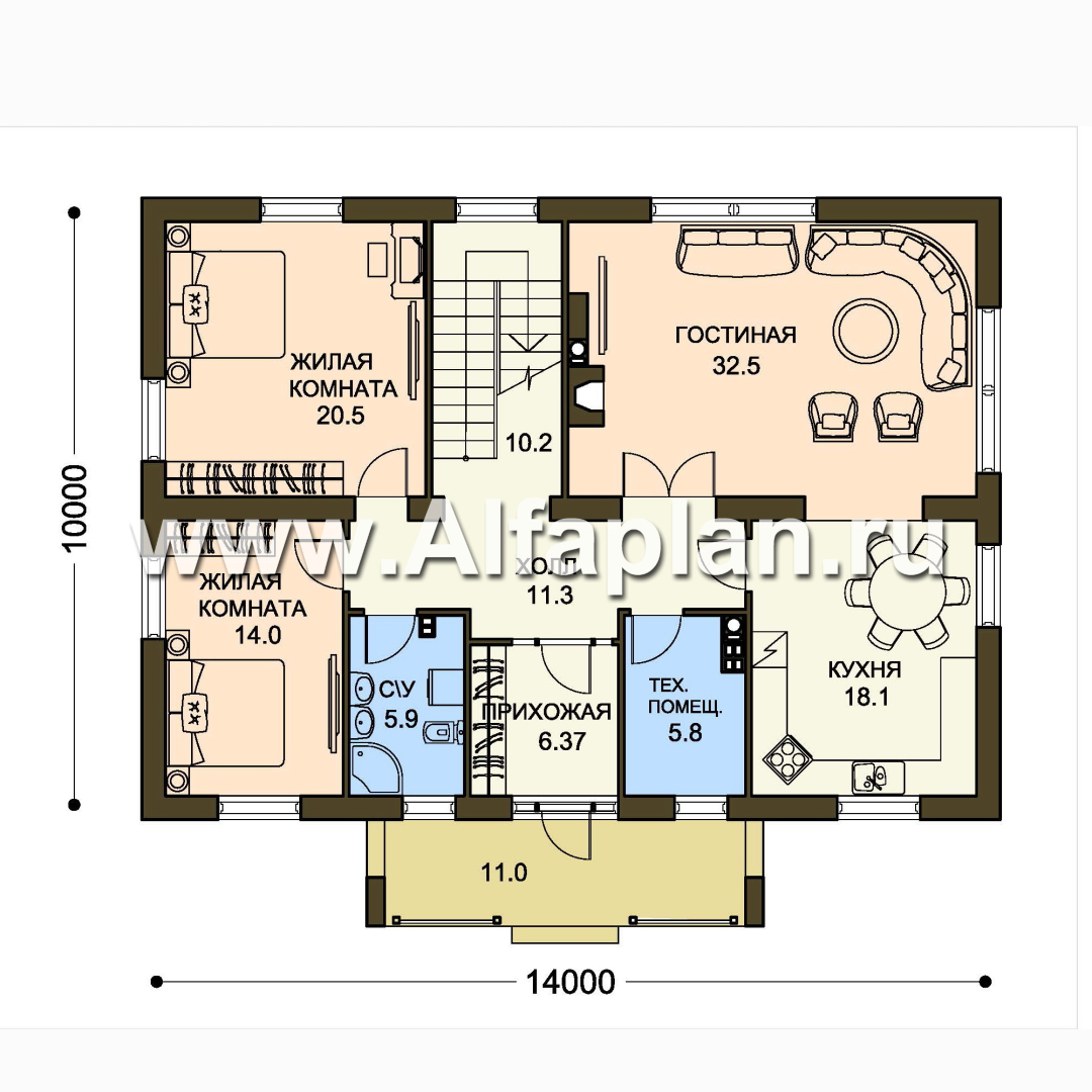 W020-7 Проект двухэтажного дома, с двумя спальнями на 1-ом этаже и с балконом