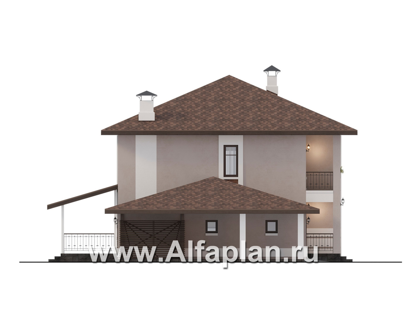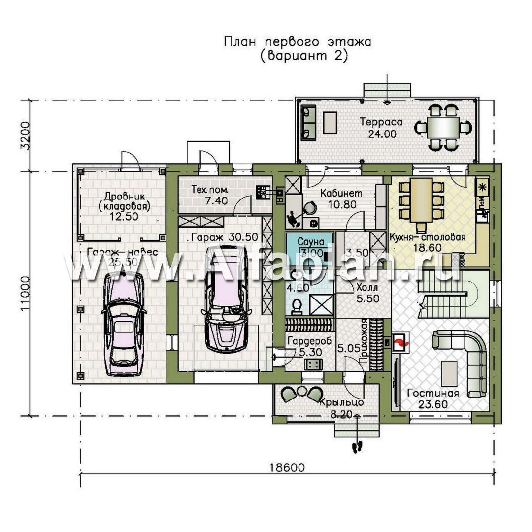 «Ладога» - проект двухэтажного дома из газобетона, с террасой, планировка с гаражом