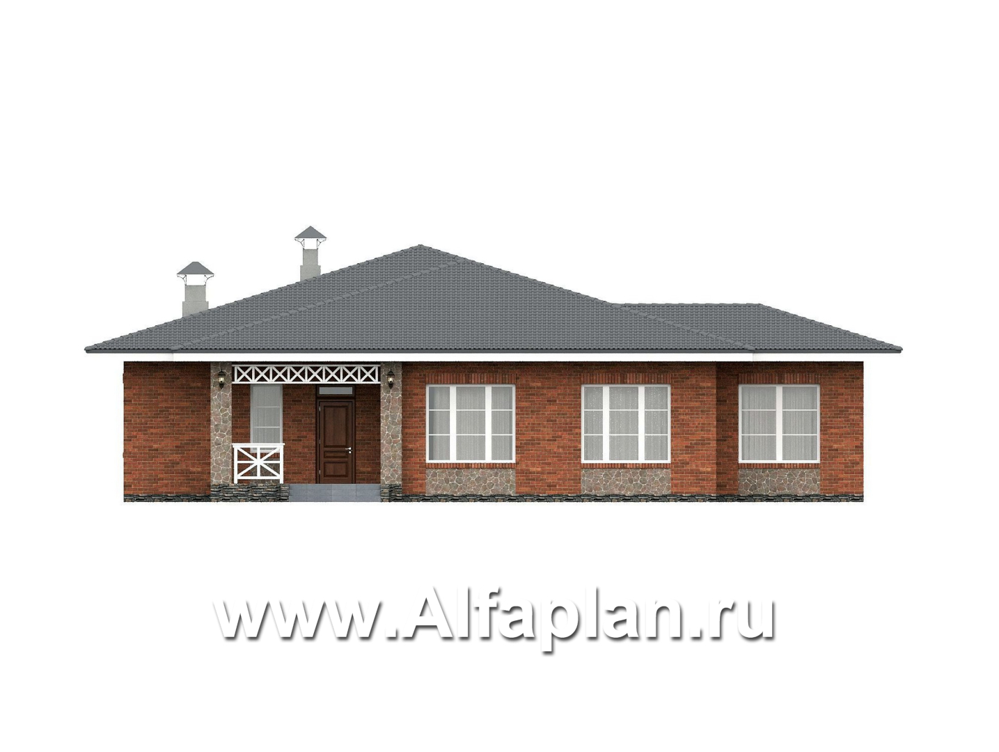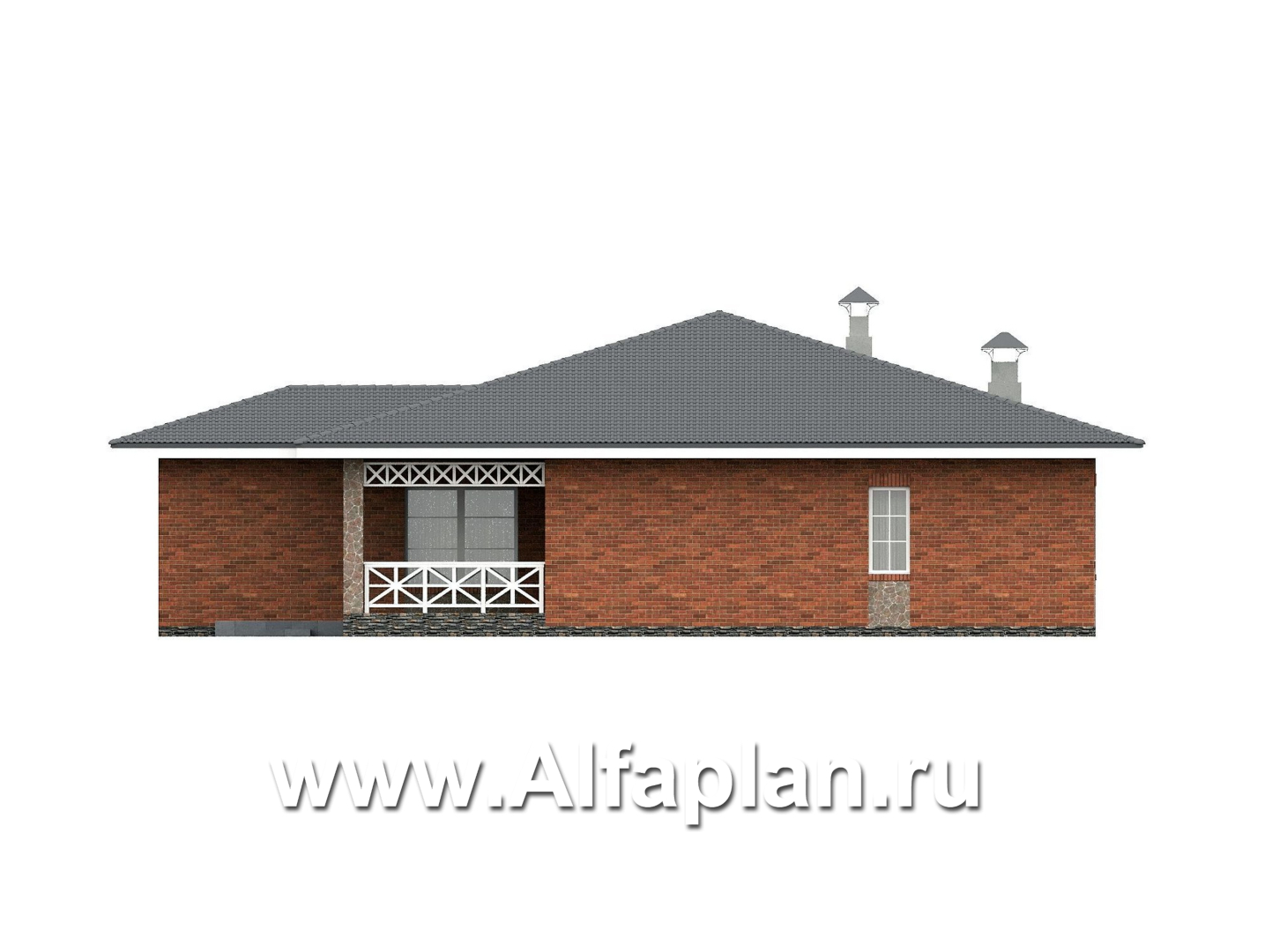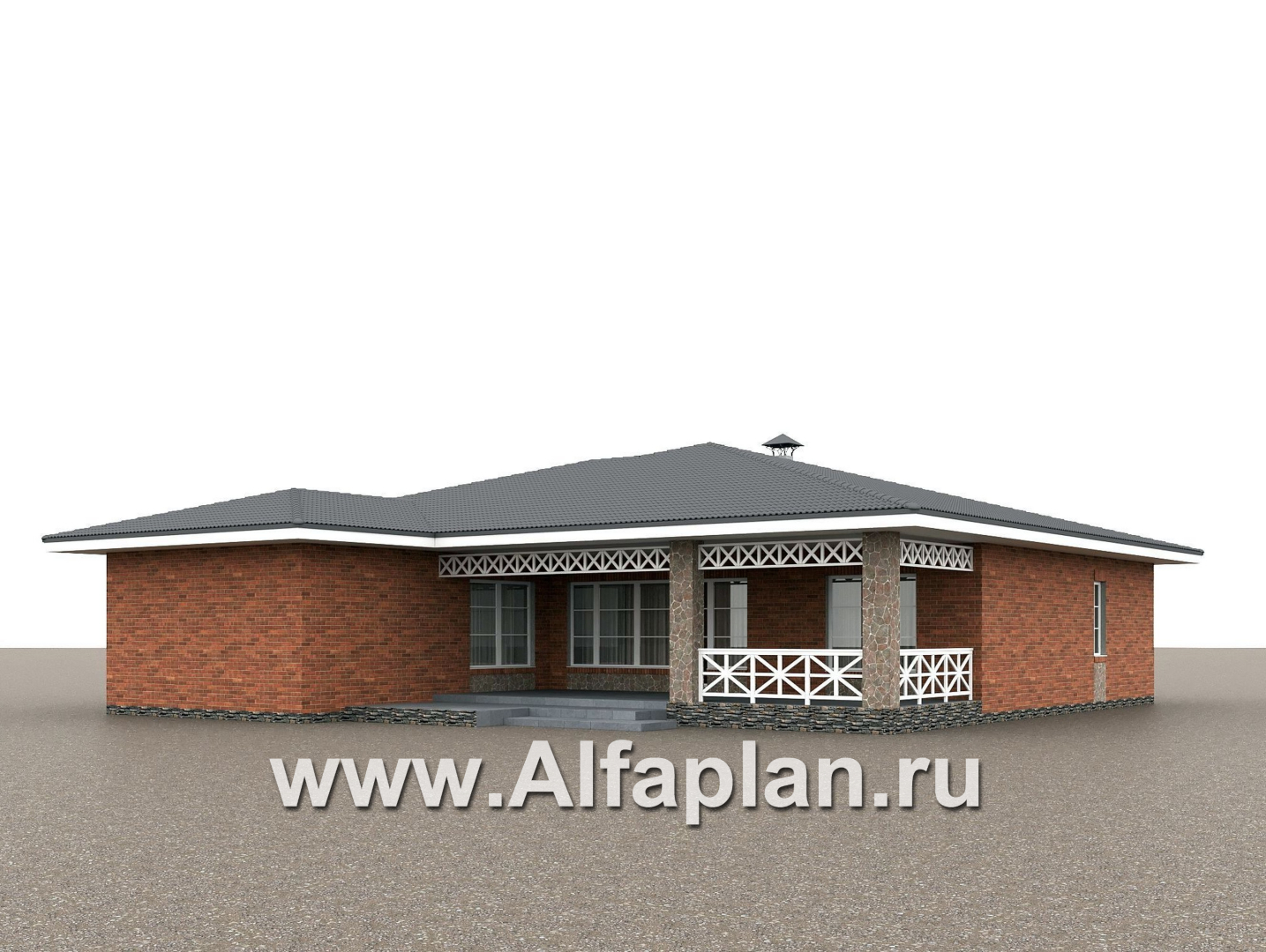 666A-2-S «Горизонталь» - проект одноэтажного дома с террасой, в немецком стиле, баварская кладка