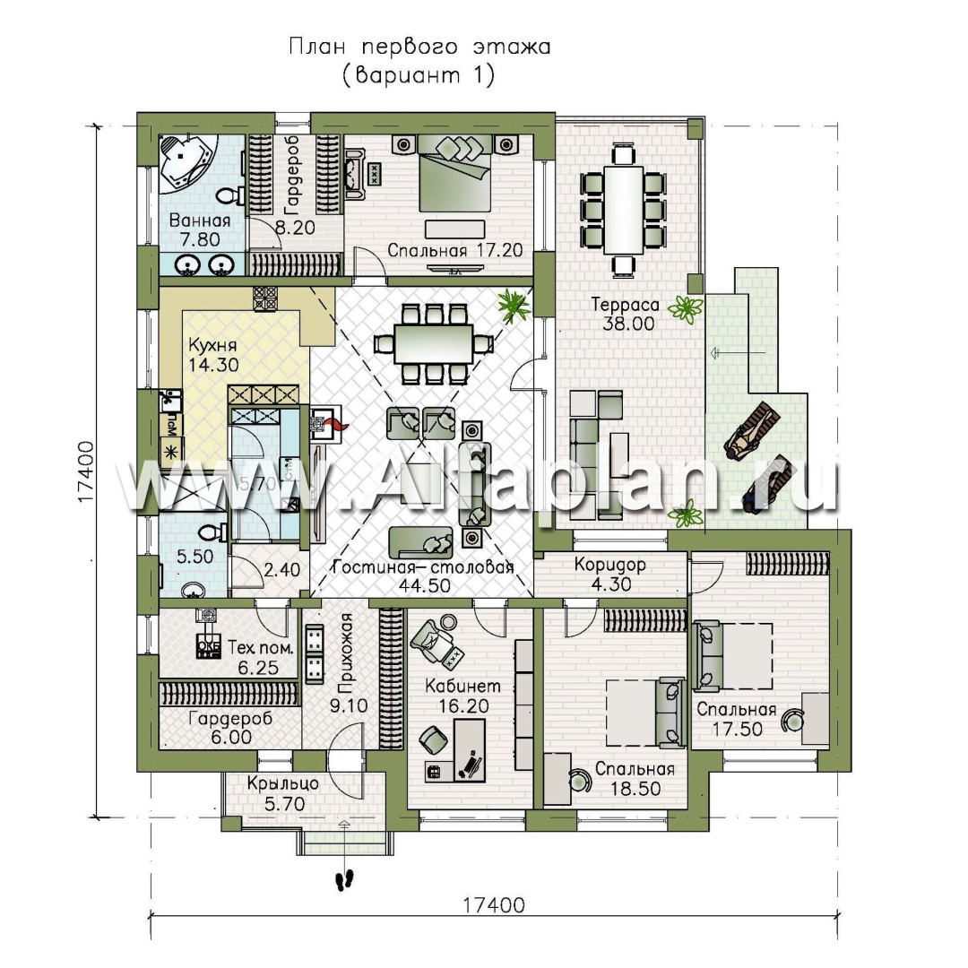 Проект одноэтажного дома «Горизонталь» 666А, 206 м2, 4 спальни, 2 варианта планировки.