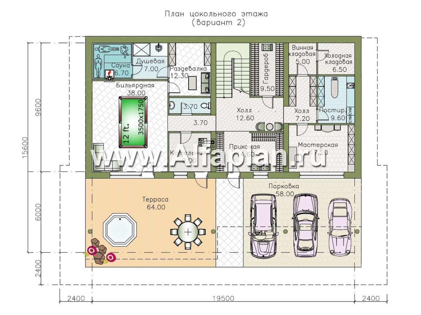 | Высота цокольного этажа | от пола до потолка | 3 м |