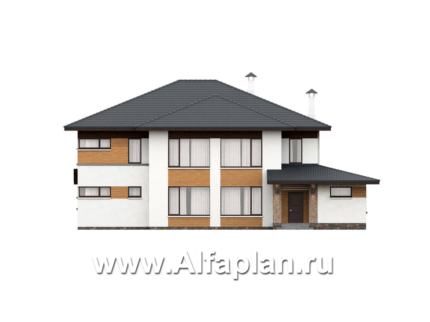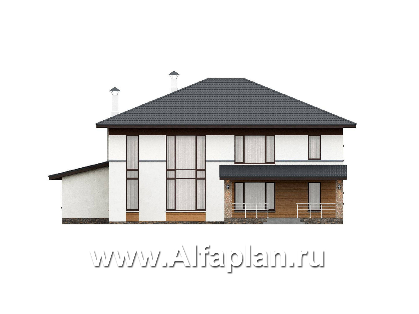 978C «Каменная гавань» - проект двухэтажного коттеджа, планировка две спальни на 1 эт и второй свет в гостиной, три мастер спальни, в стиле минимализм