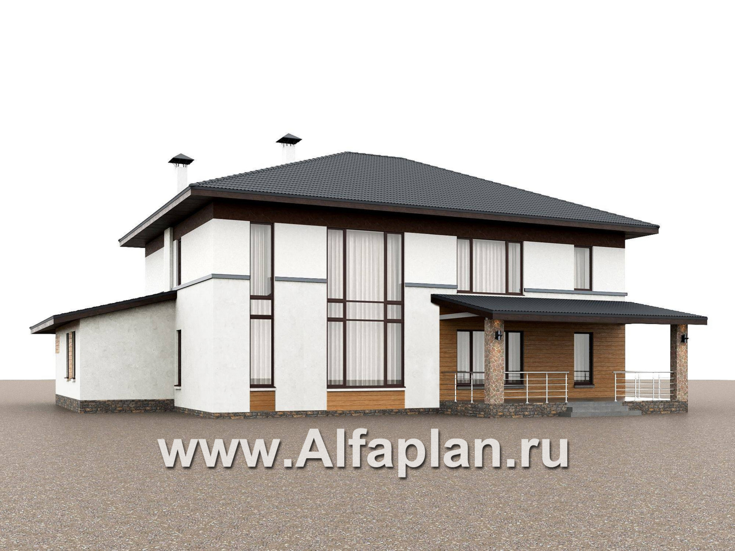 «Каменная гавань» - проект двухэтажного коттеджа, планировка две спальни на 1 эт и второй свет в гостиной, три мастер спальни, в стиле минимализм
