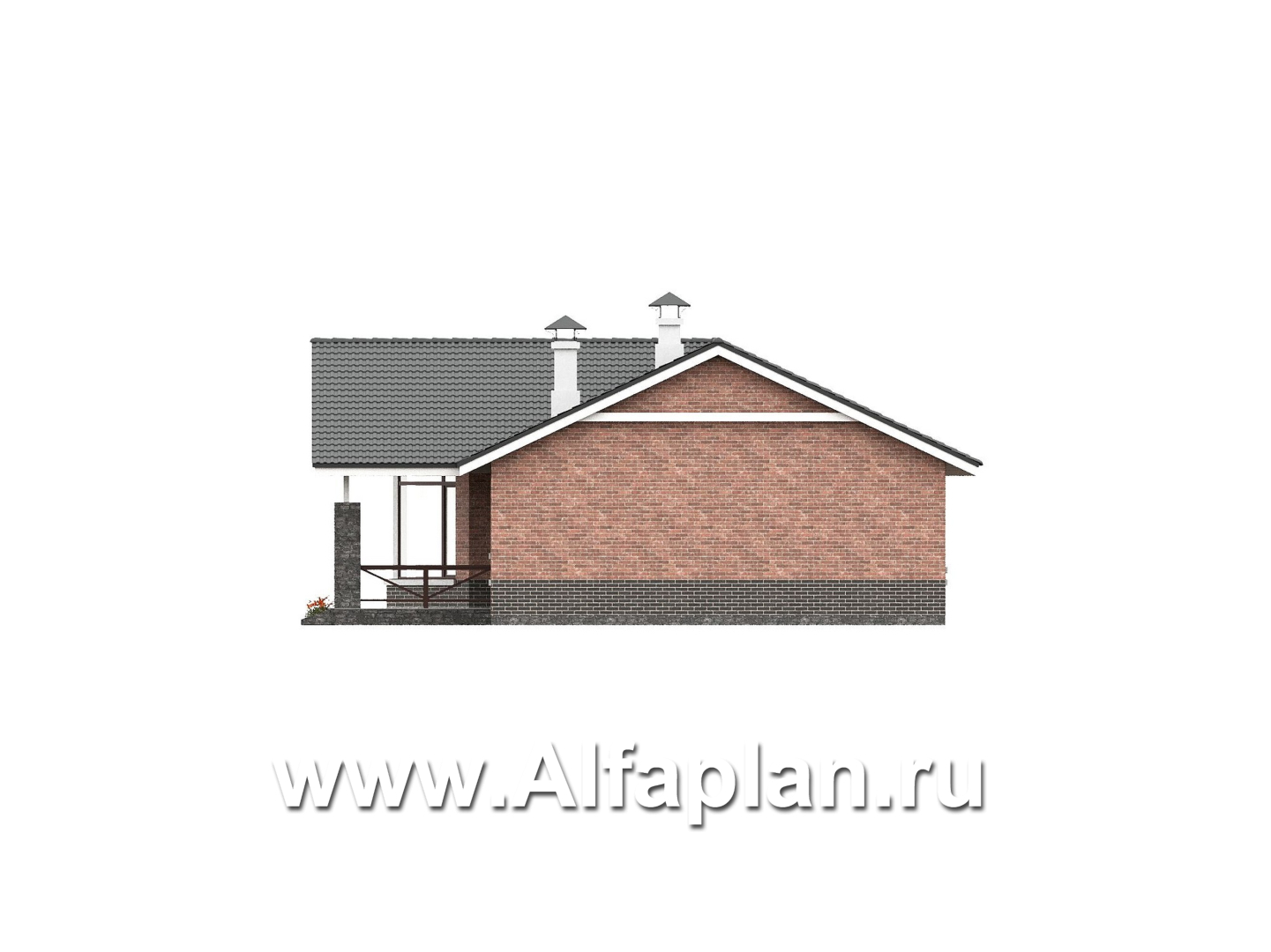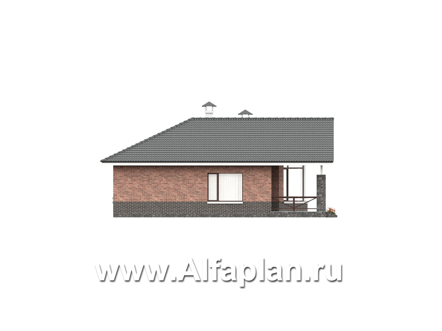 923B «Рубикон» - проект одноэтажного дома, планировка с панорамным эркером и с просторной террасой, в современном стиле