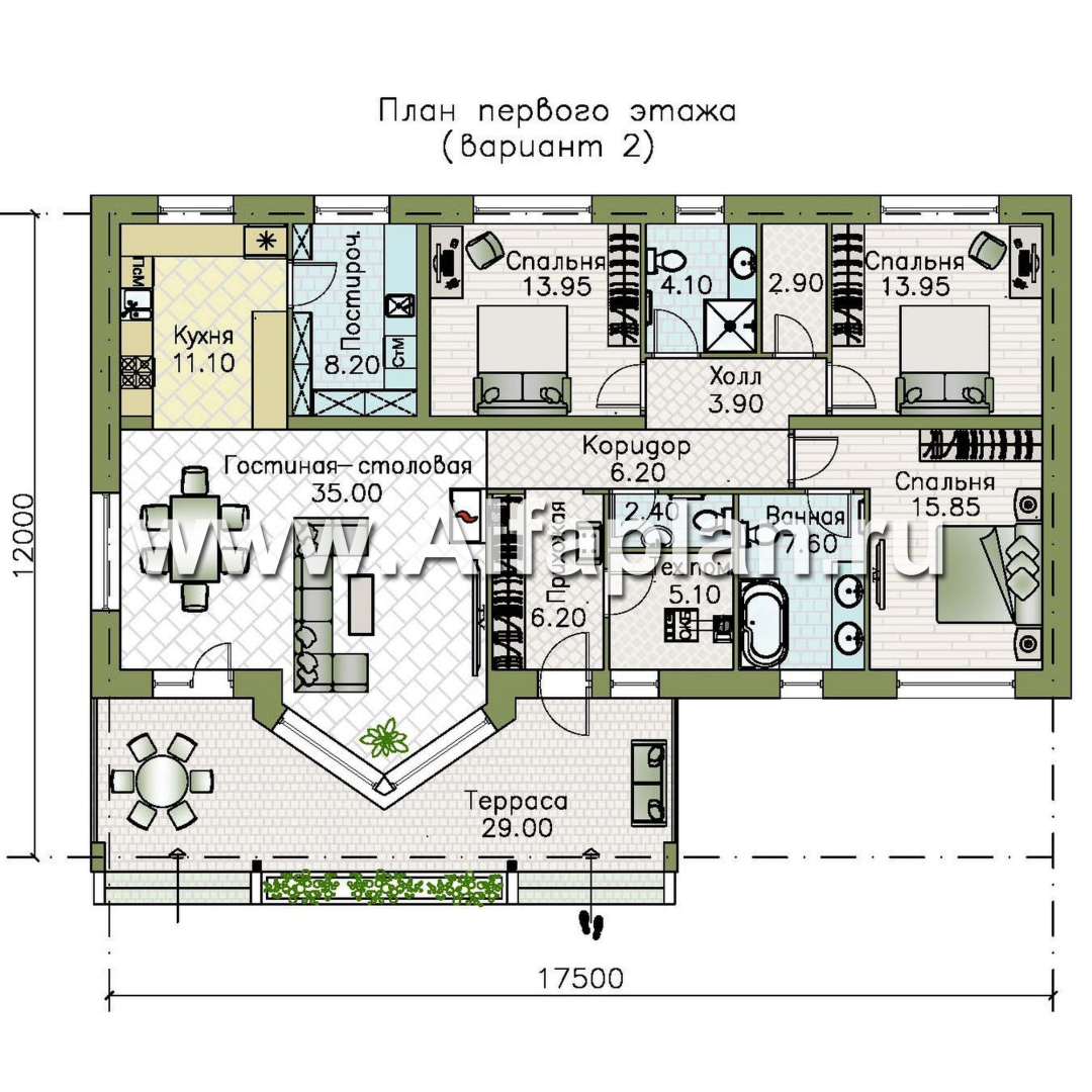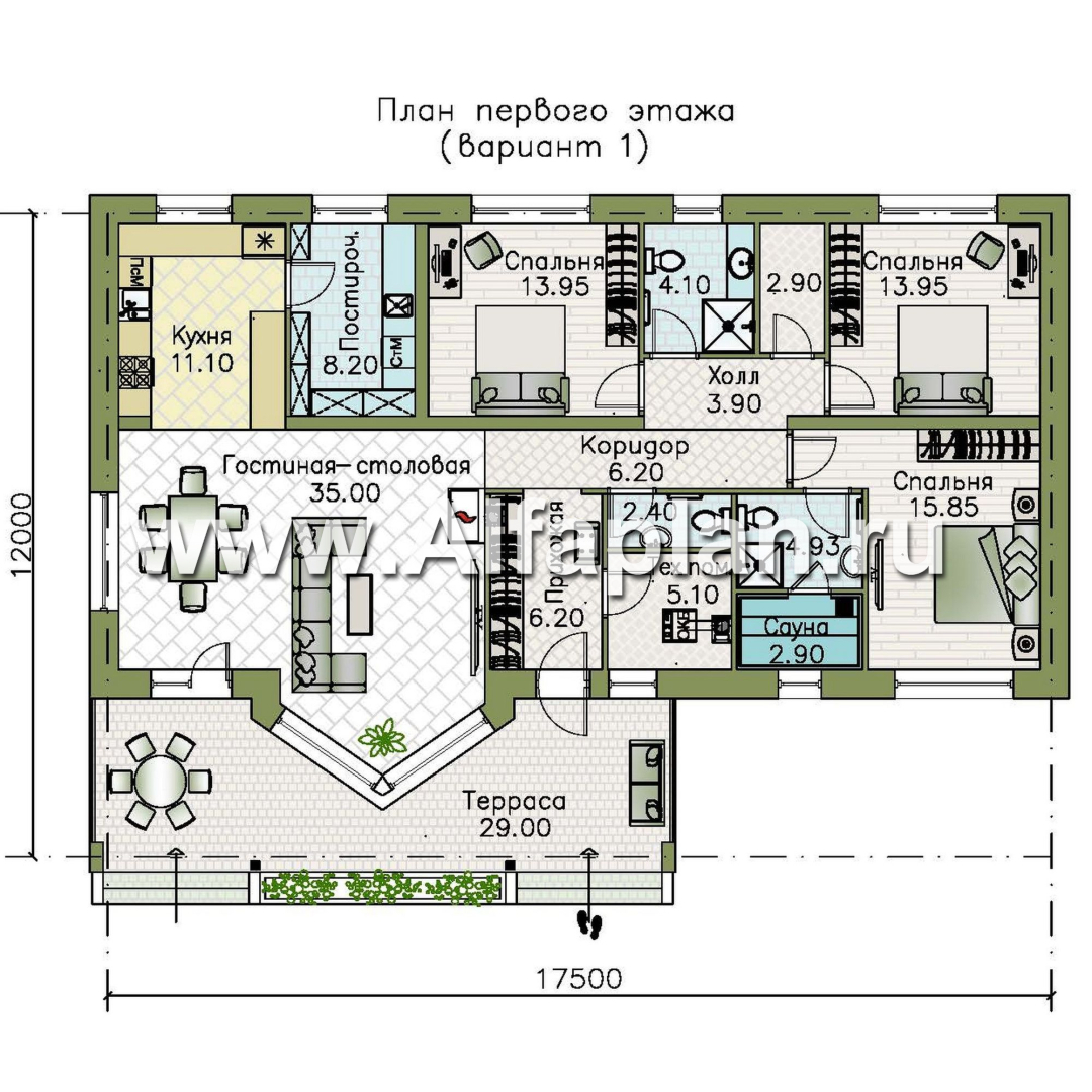 «Рубикон» - проект одноэтажного дома, планировка с панорамным эркером и с просторной террасой, в современном стиле - технические характеристики