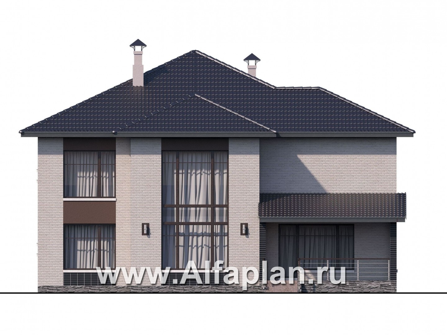910A-S «Эльба» - проект современного двухэтажного дома, вилла со вторым светом, балконом и с террасой