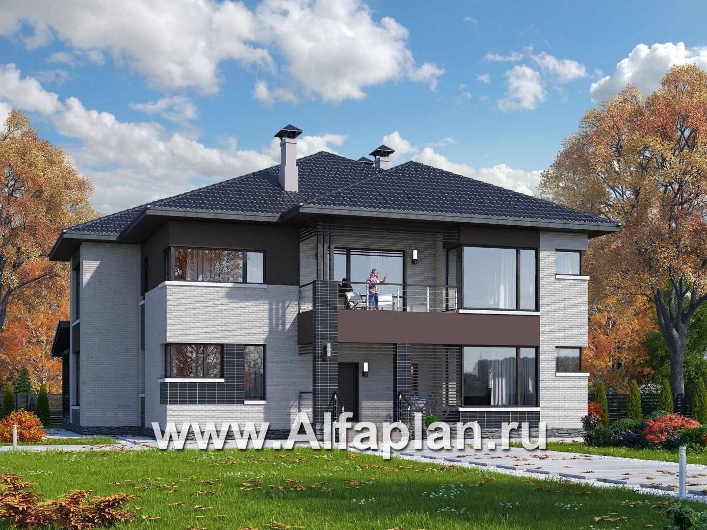 «Эльба» - проект современного двухэтажного дома, вилла со вторым светом, балконом и с террасой