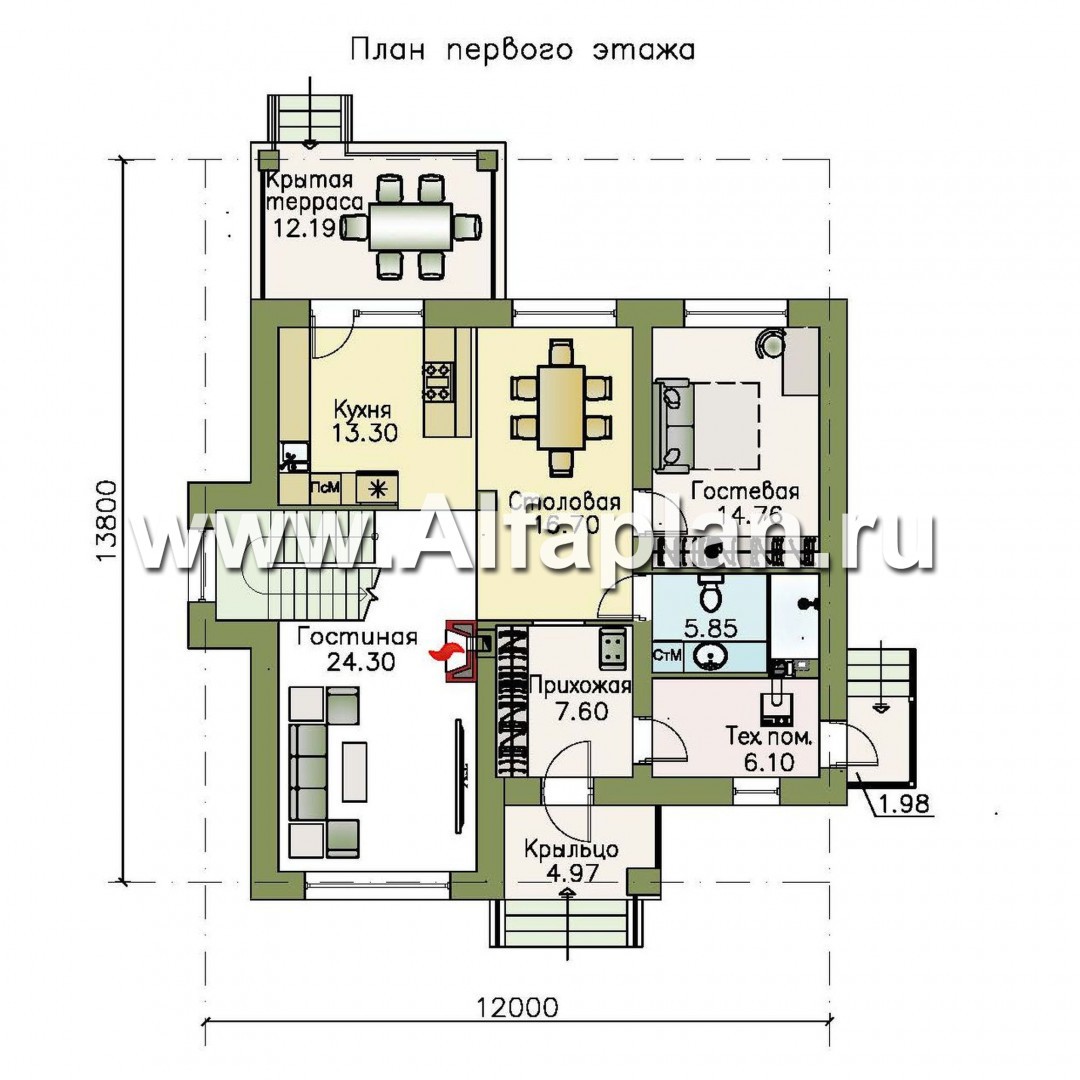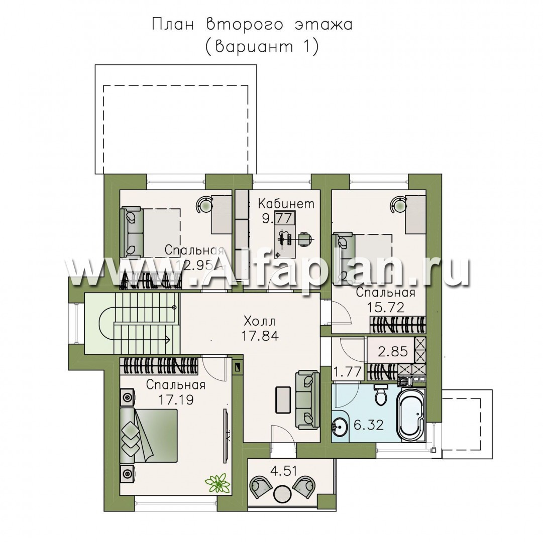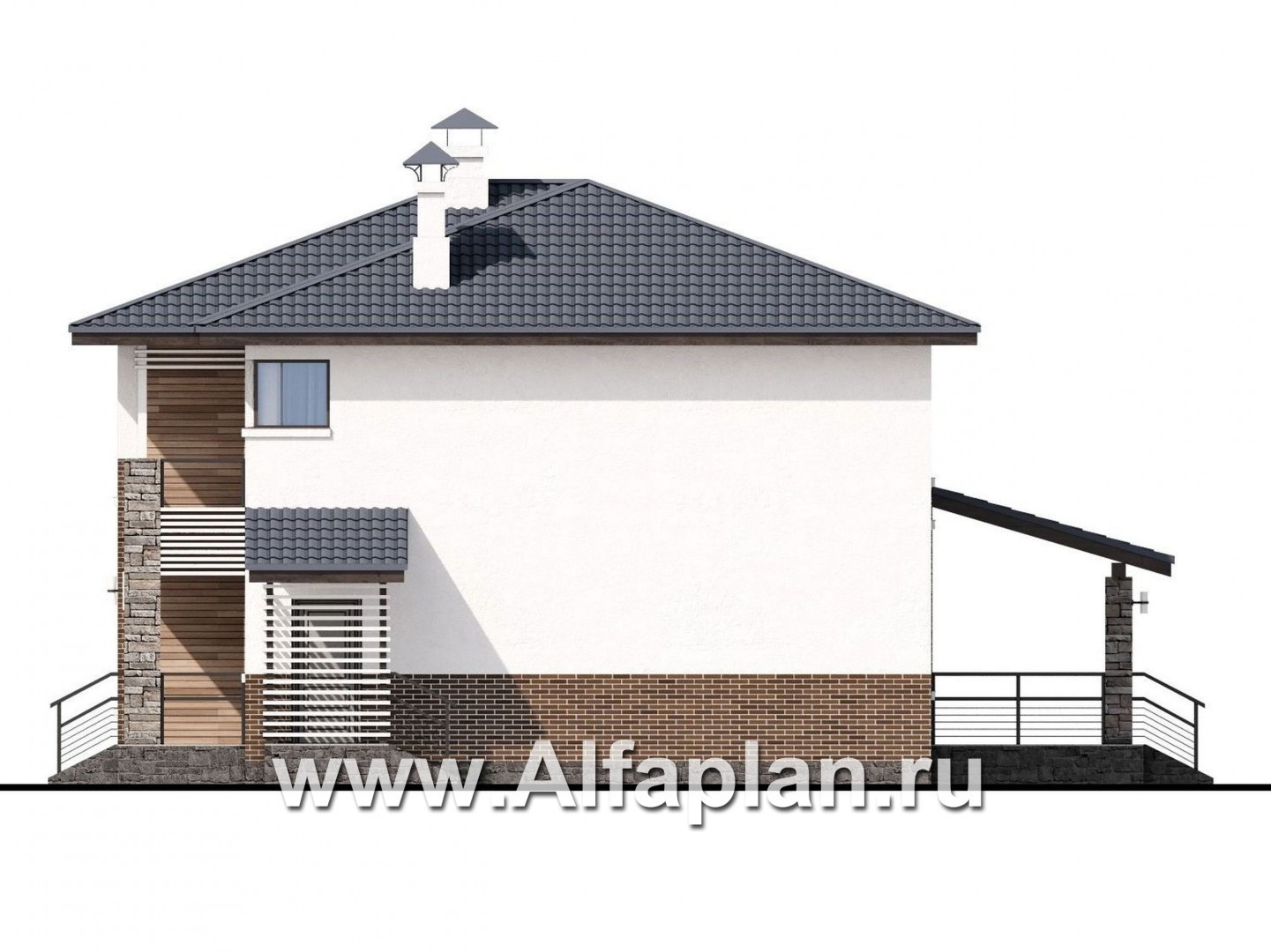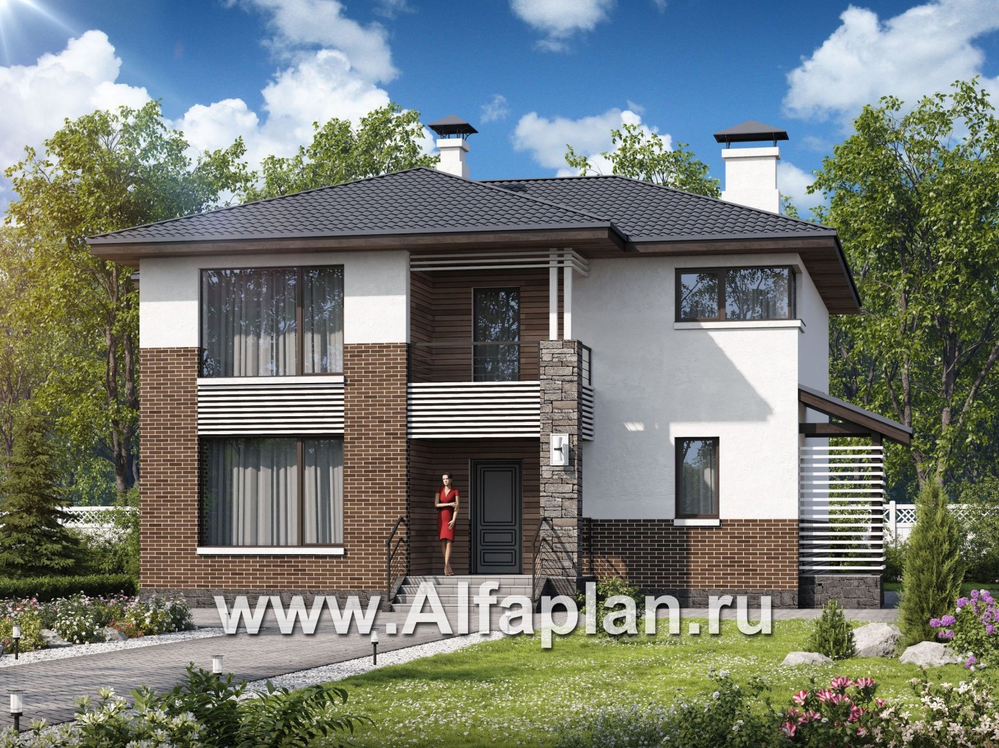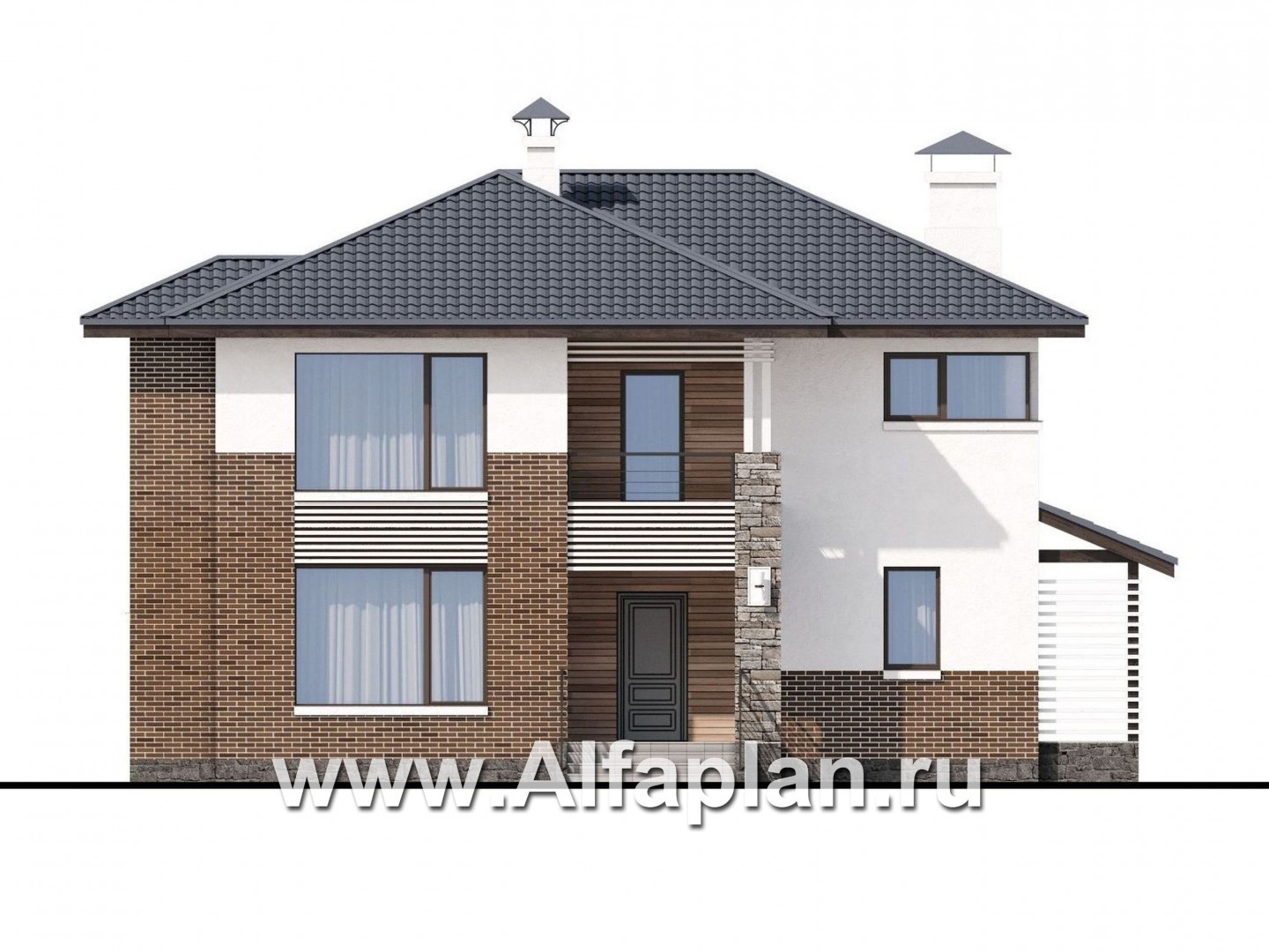 Строительство этого дома под ключ может вестись из кирпичей или блоков, ине представляет сложностей. Проект разработан архитектурно-дизайнерской студией ®«Альфаплан». У нас – только уникальные авторские проекты домов.