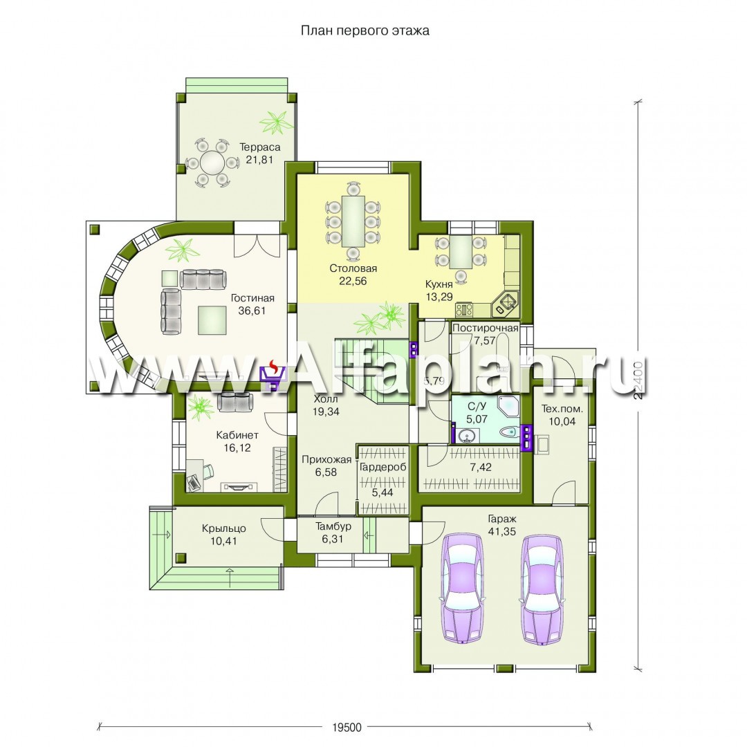 120A-S «Коралл» - проект двухэтажного дома, с гаражом на 2 авто, с полукруглой гостиной
