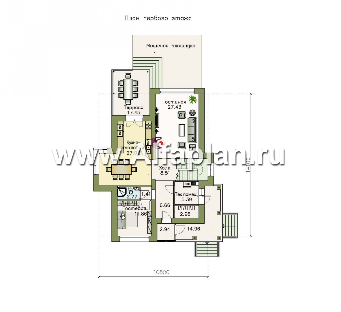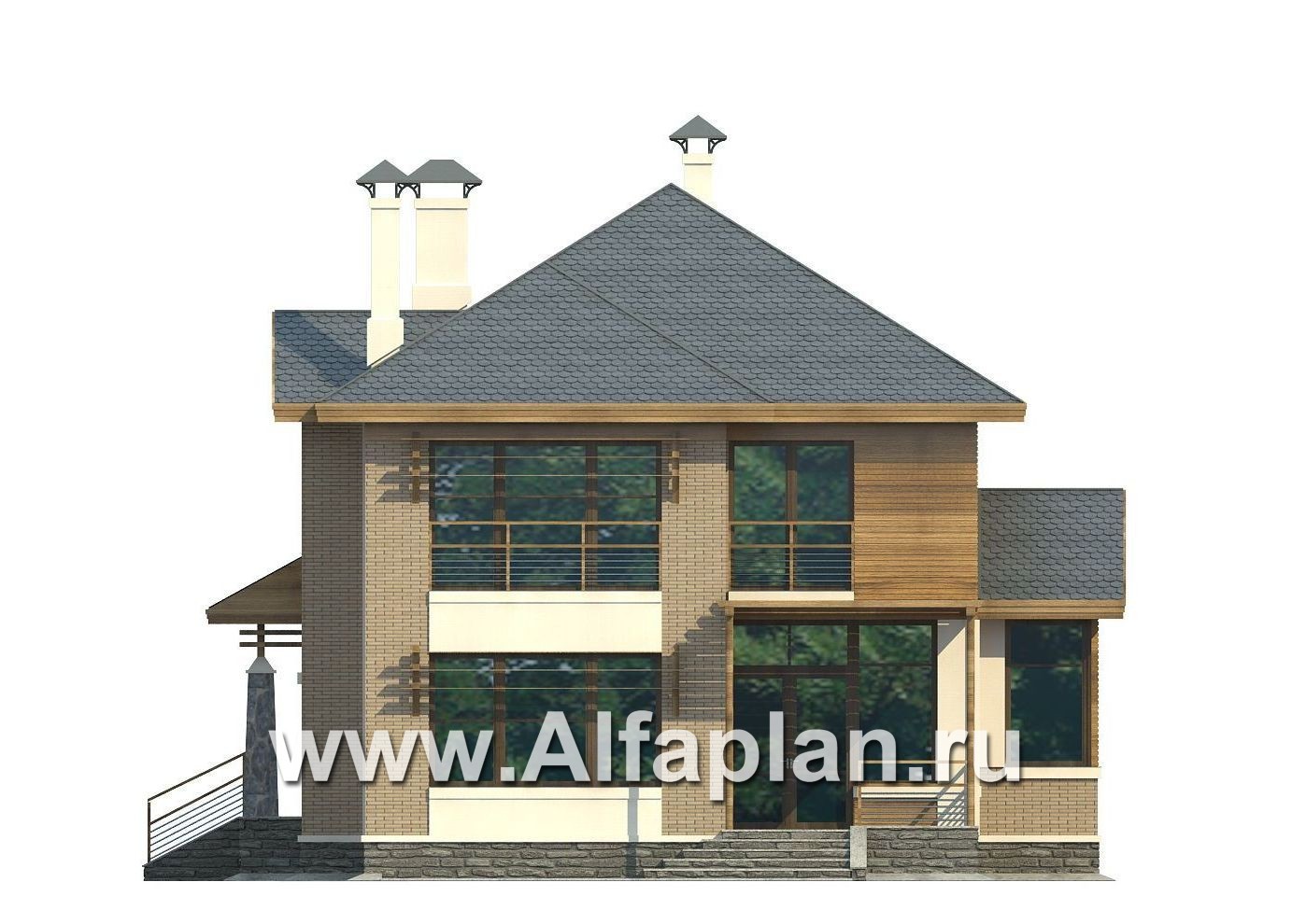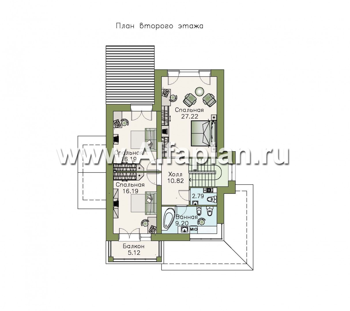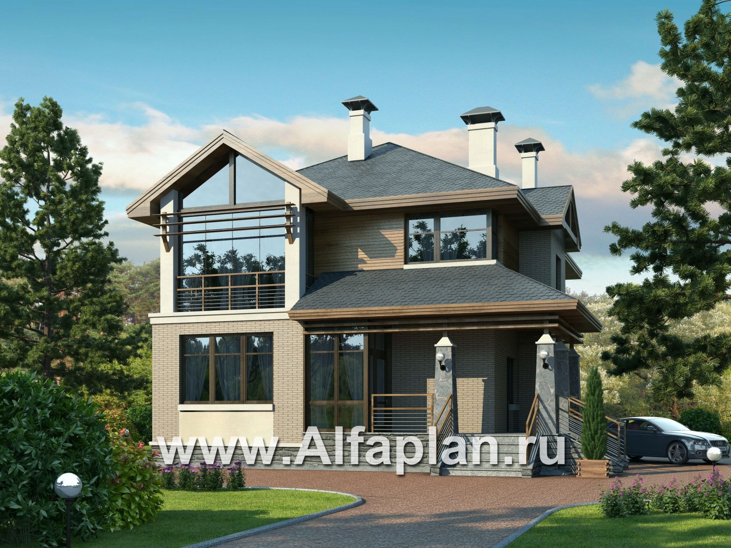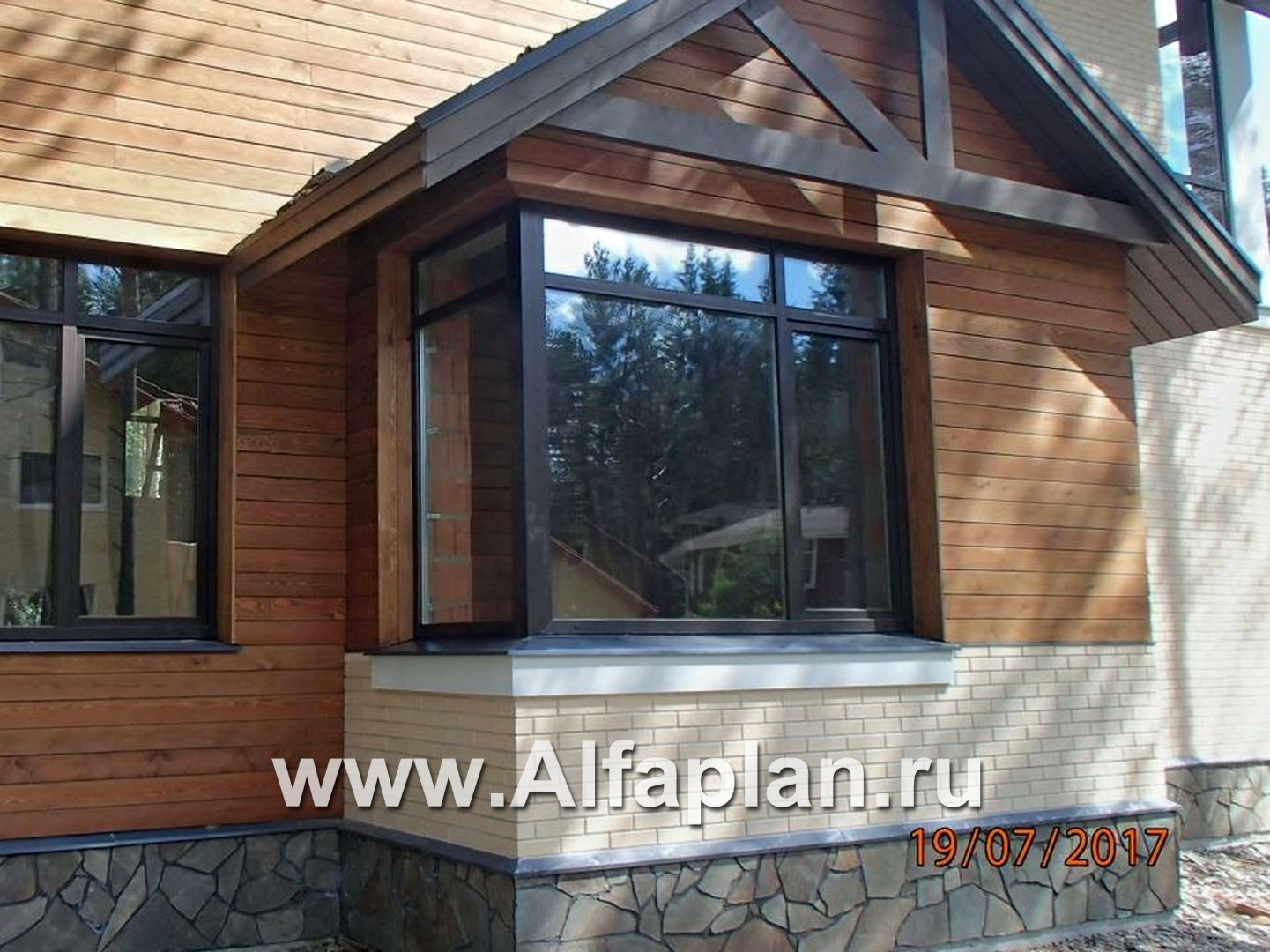 Перед вами компактный двухэтажный коттедж. Этот дом особенно будет привлекательным для любителей просторных, хорошо освещенных интерьеров, так как в доме много окон и есть угловые витражи. Такой дом бессмысленно пытаться впихнуть в плотную застройку или пытаться прятать его за высокий забор. Данный проект требует простора и живописного окружения. При этом коттедж 106В имеет компактный план, не требующий большого участка. В основании дома заложена монолитная ж/б плита. В отношении материалов, используемых в строительстве наружных стен, коттедж 106В предусматривает альтернативное решение – можно использовать как кирпич, так и газобетонные блоки. В этом отношении коттедж под номером 106В можно отнести к категории «проекты кирпичных и газобетонных домов».