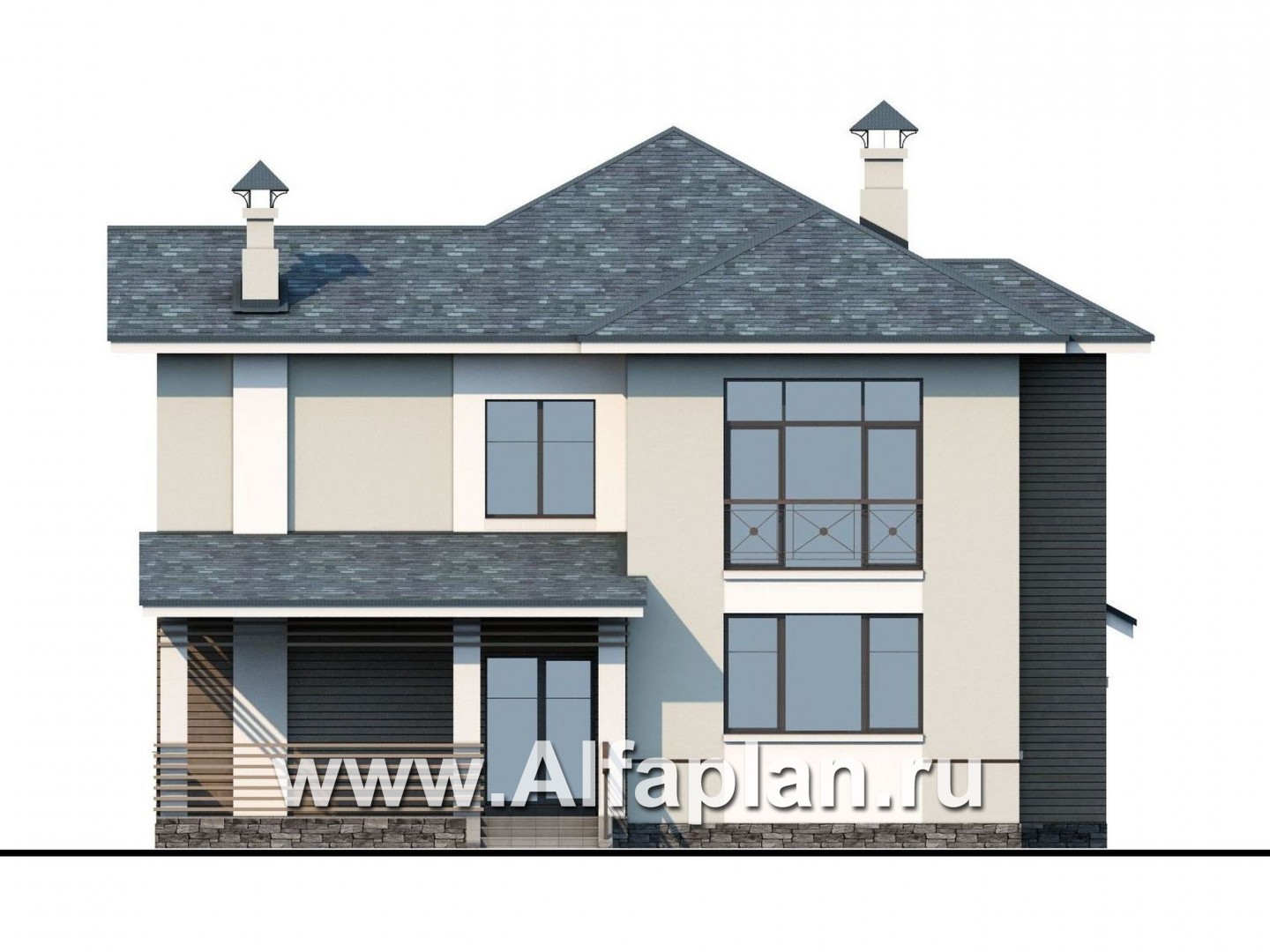 Словосочетанием «современная классика» сегодня никого не удивишь: классический стиль активно впитал модные тенденции, внеся со своей стороны гармонию и подчеркнутую строгость форм. Элементы классики отчетливо видны в проекте коттеджа «Пятый элемент», и именно они, а точнее, их современная трактовка, придают постройке особые шарм и привлекательность.