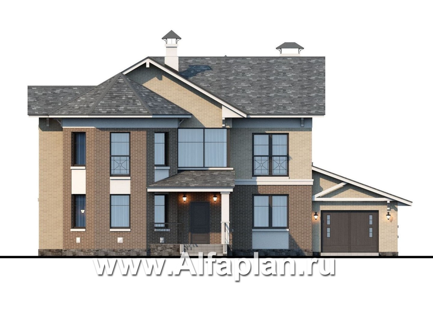 «Clever» - проект двухэтажного дома, планировка с эркером и кабинетом на 1 эт, с террасой и с гаражом
