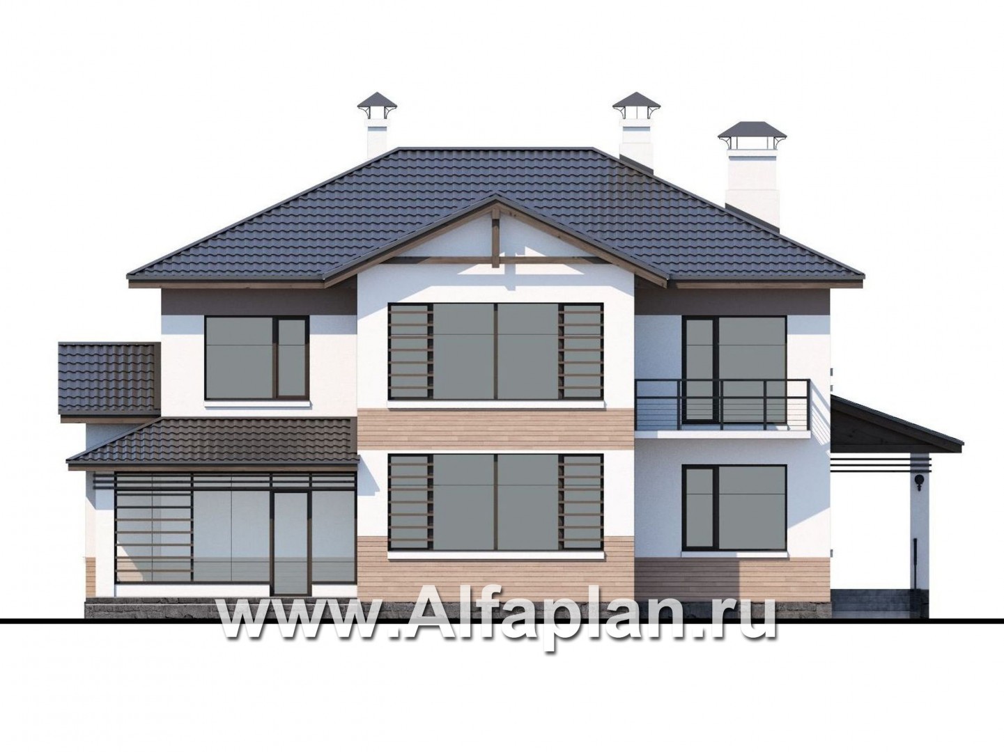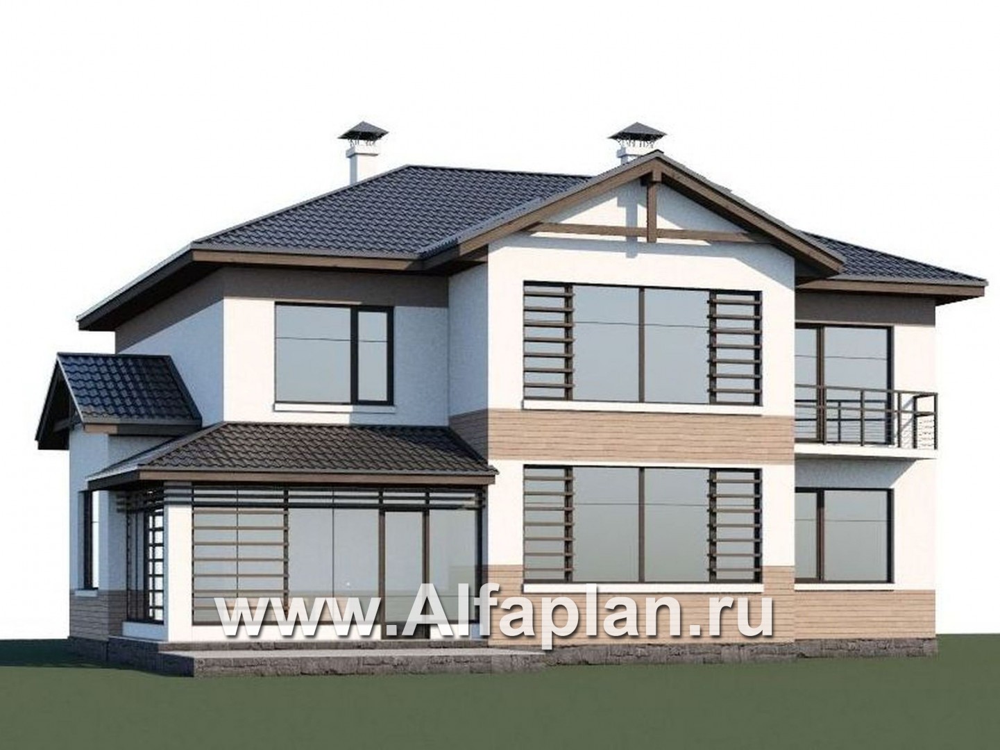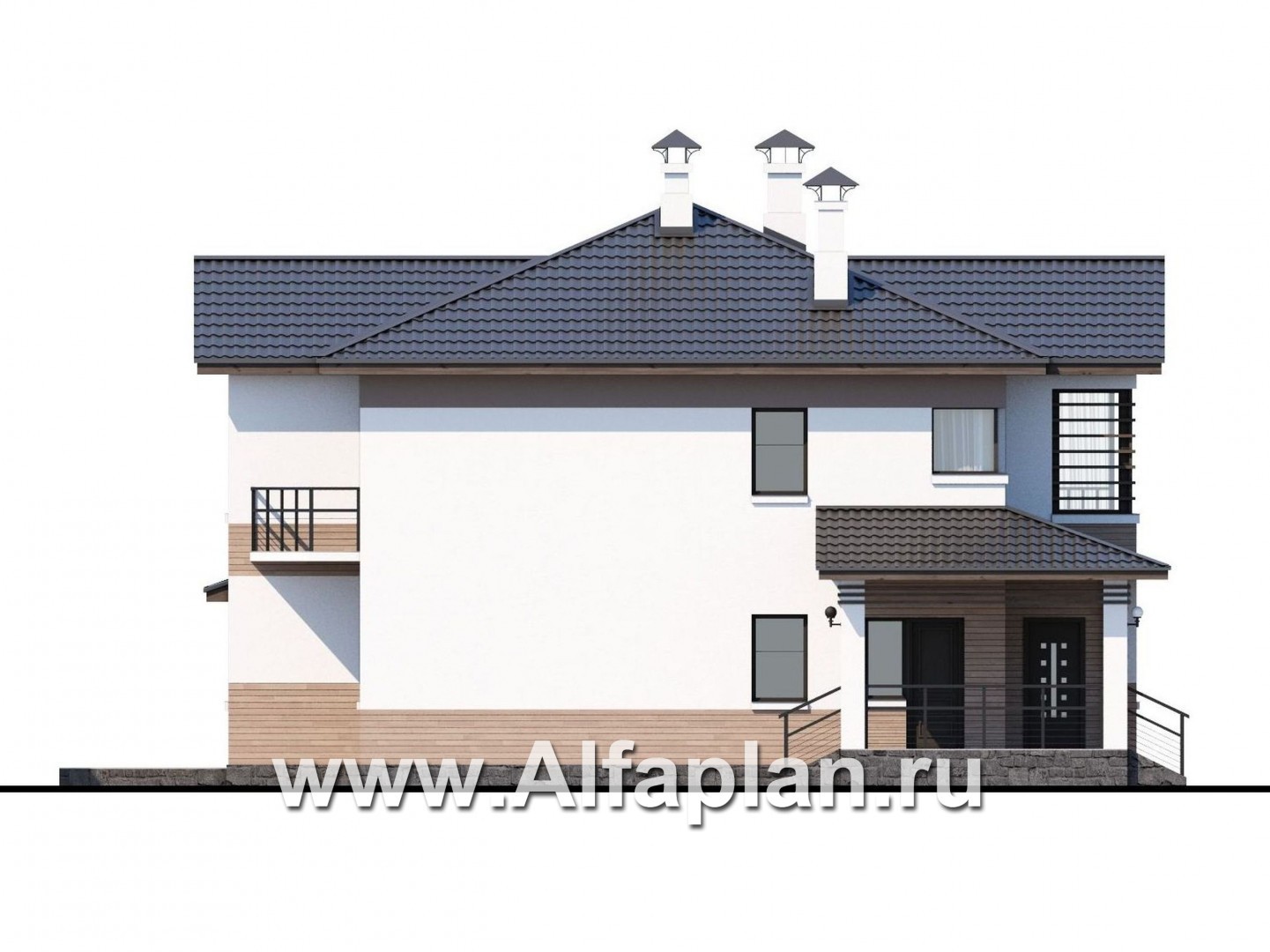 518A-S «Аутентик» - проект двухэтажного дома, с террасой и балконом, планировка с лестницей в центре, в современном стиле