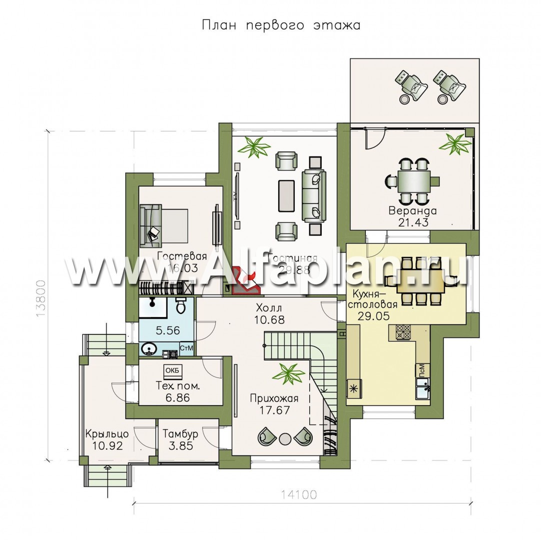 «Аутентик» - проект двухэтажного дома, с террасой и балконом, планировка с лестницей в центре, в современном стиле