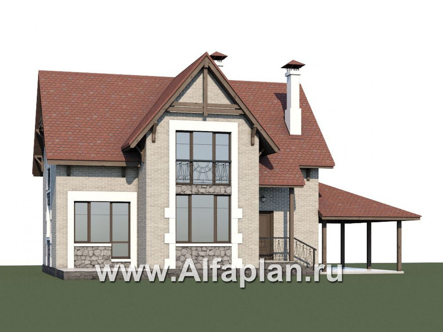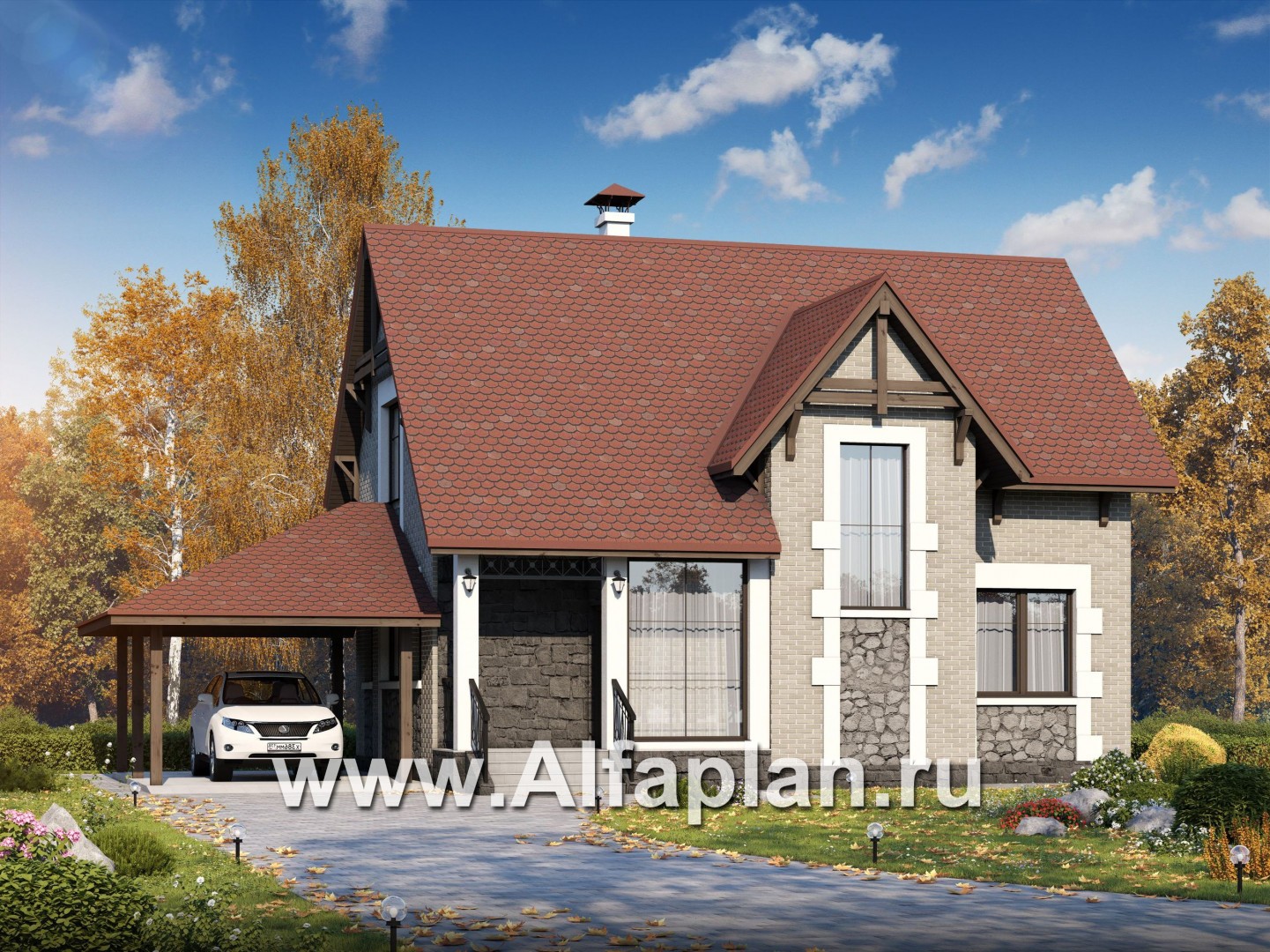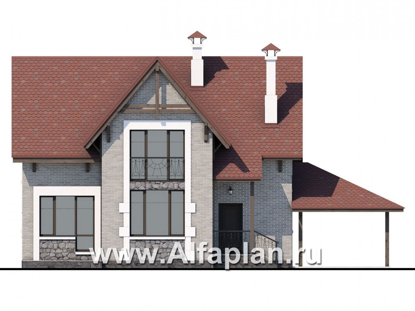 524B-S «Высокая орбита»- проект дома с мансардой, с эркером, с навесом для 1 авто, в стиле эклектика