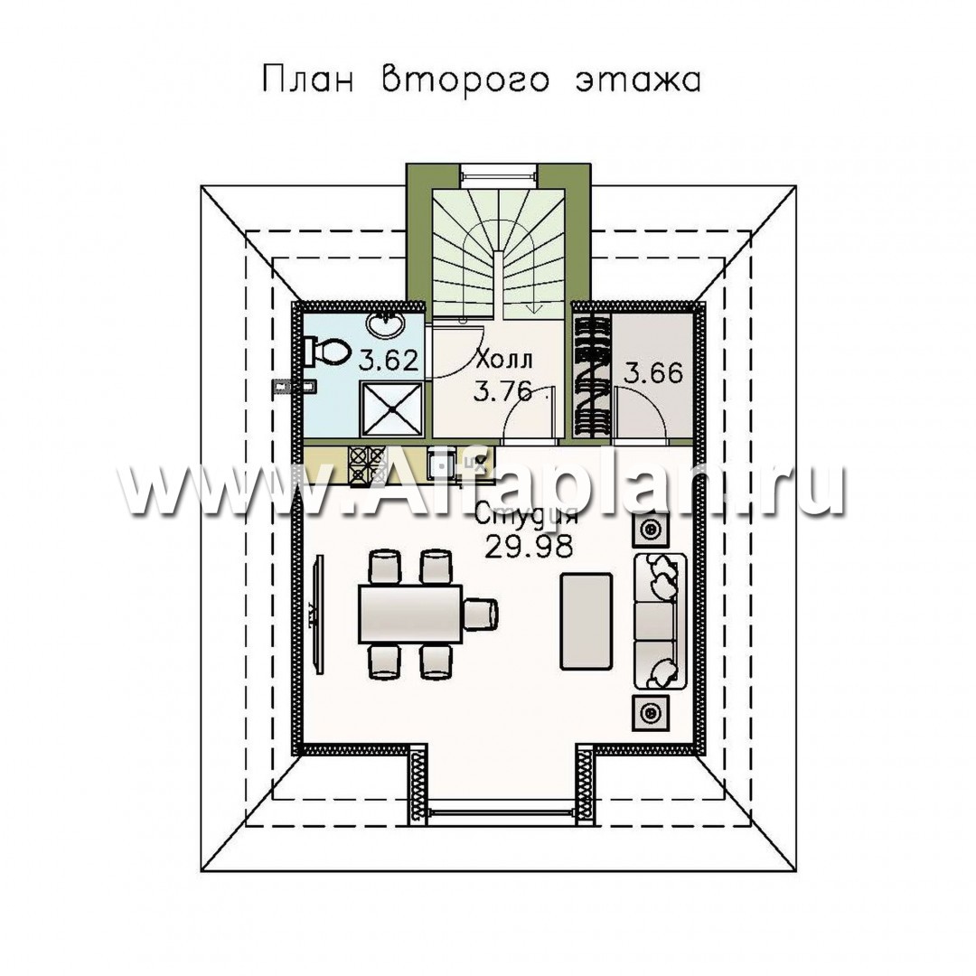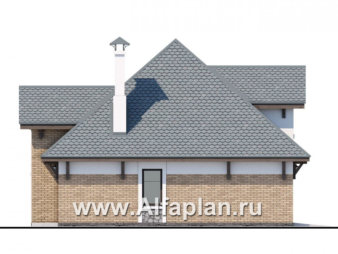 В этом проекте реализована идея квартиры-студии в мансарде над просторным гаражом для двух автомобилей. Его можно использовать для размещения гостей или проживания домашнего персонала.