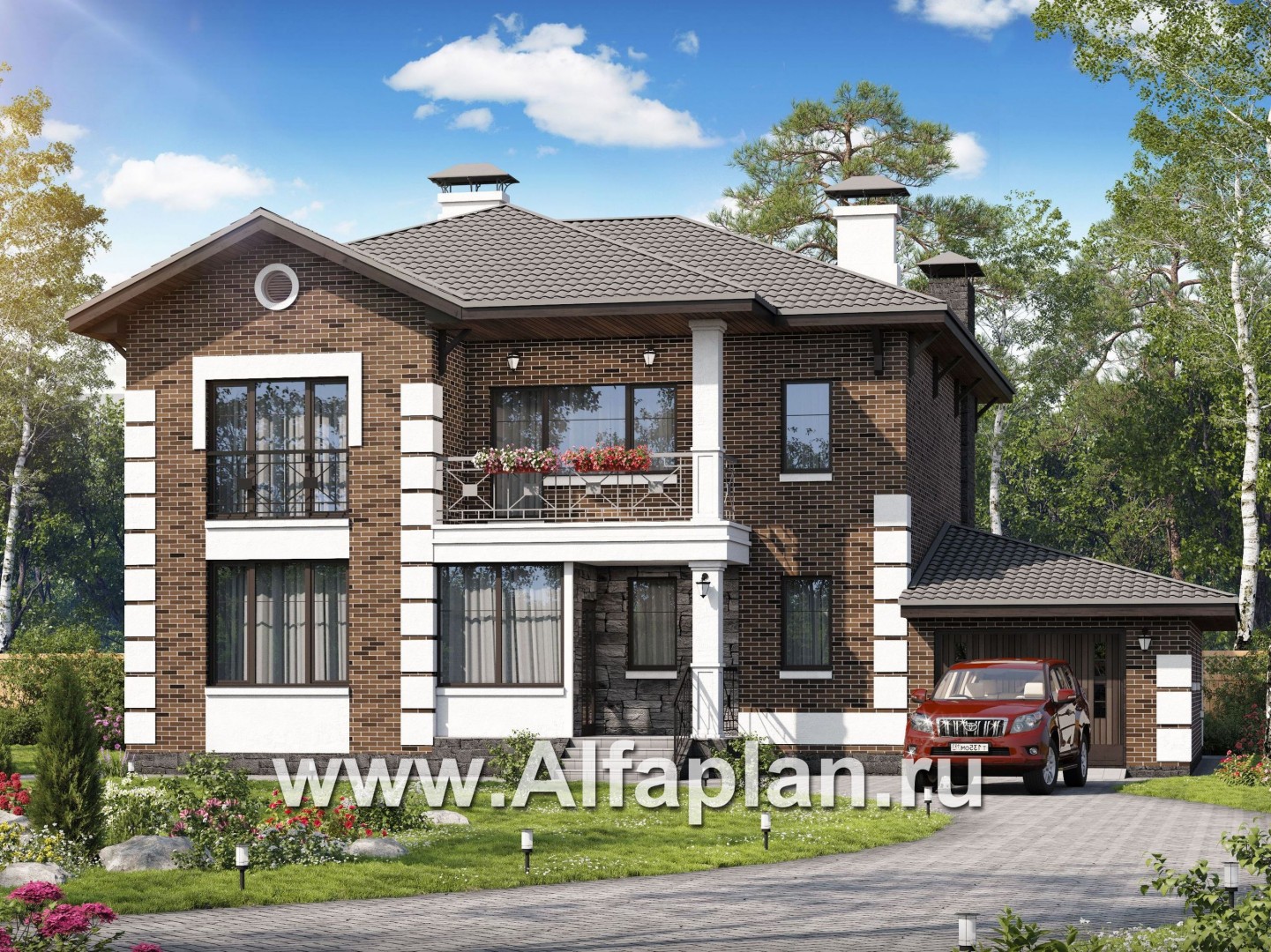Наружная отделка стен лицевой кирпич, декоративная штукатурка