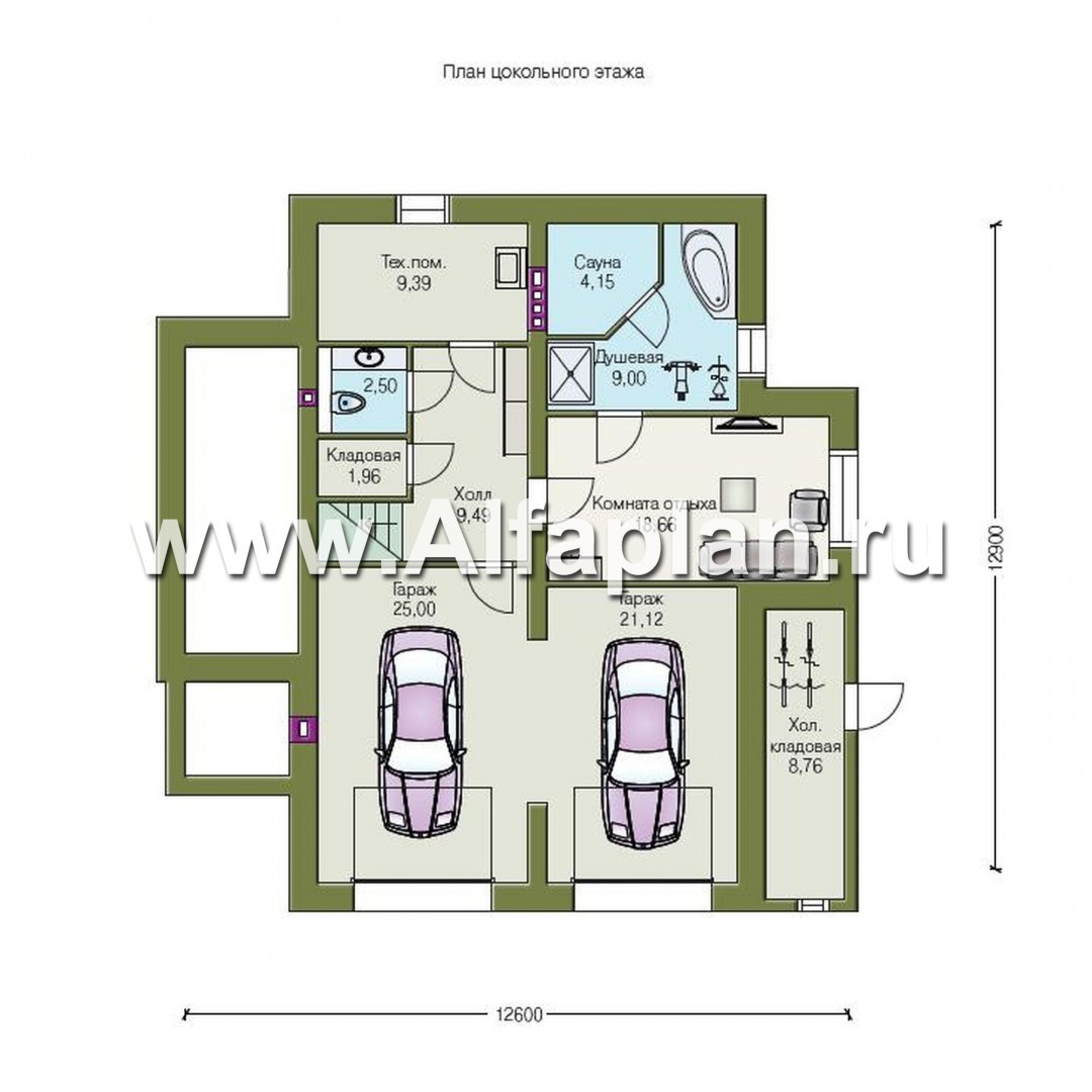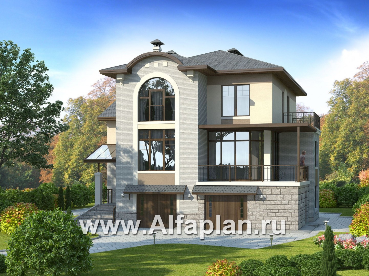 94A-S «Юсупов» - проект трехэтажного дома, с гаражом на 2 авто в цоколе, в стиле модерн