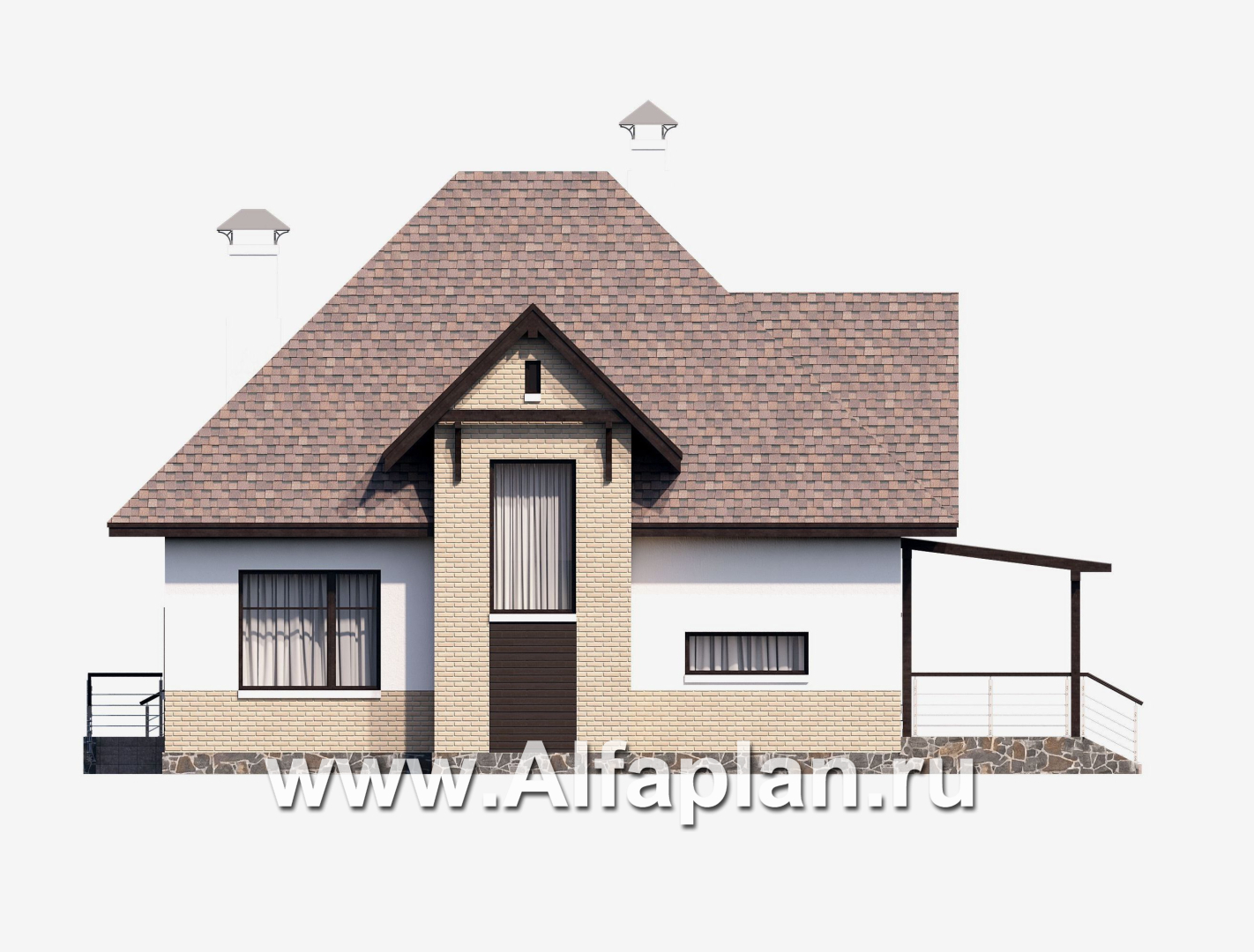 Строительство этого дома под ключ не представляет сложностей, за счет мансарды с высоким уклоном кровли достигается экономия средств. Проект разработан архитектурно-дизайнерской студией ®«Альфаплан». У нас – только уникальные авторские проекты домов