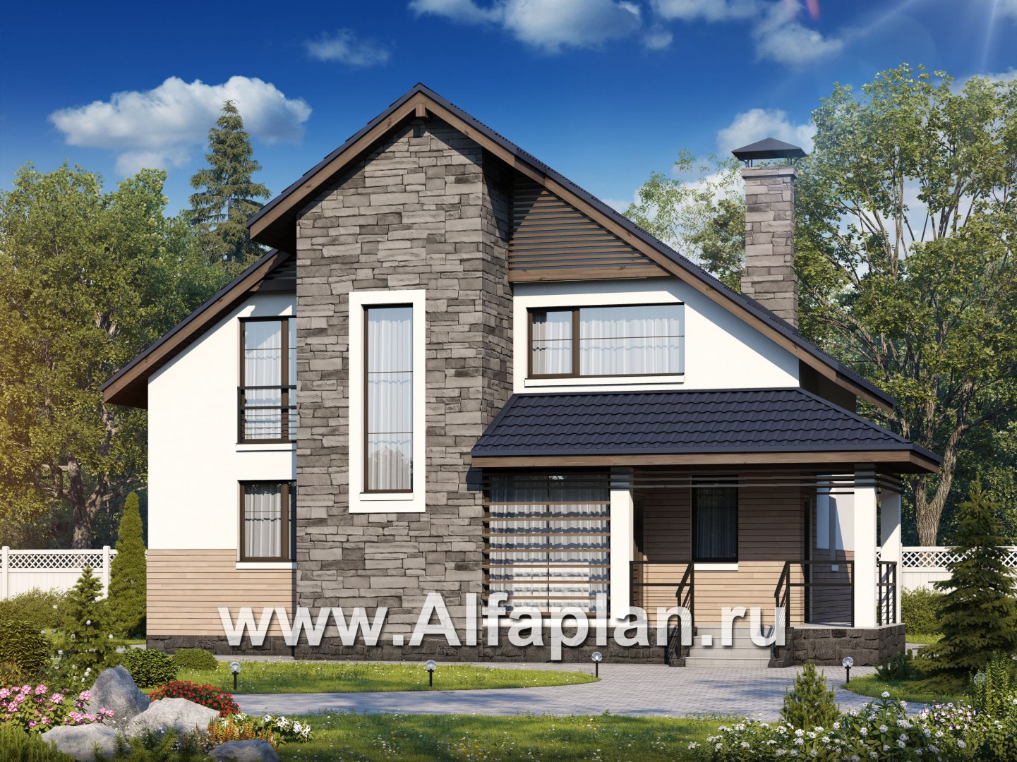 537A «Территория комфорта» - проект дома с мансардой, с сауной и с террасой, в стиле шале