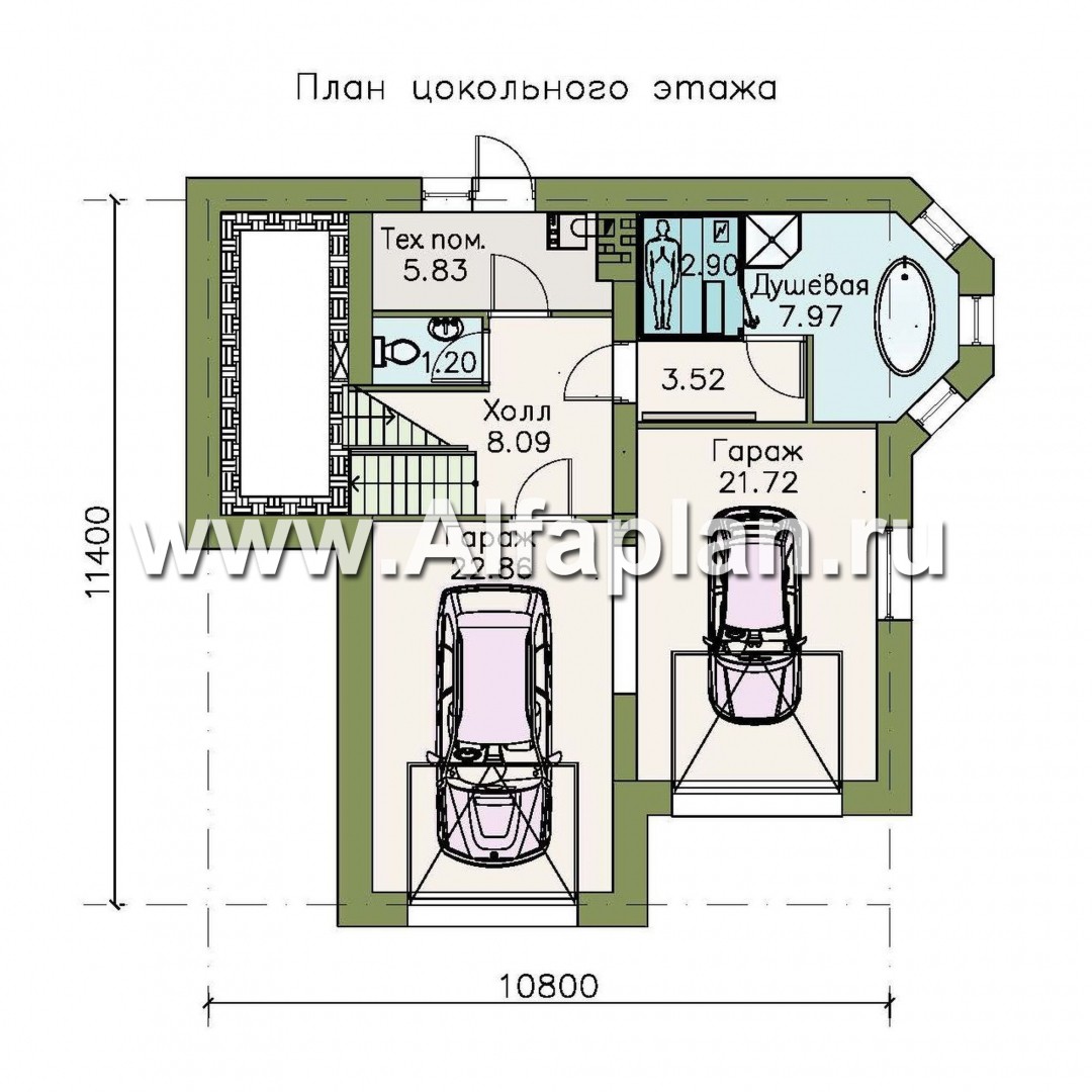 | Высота цокольного этажа | от пола до потолка | 2.36 м |