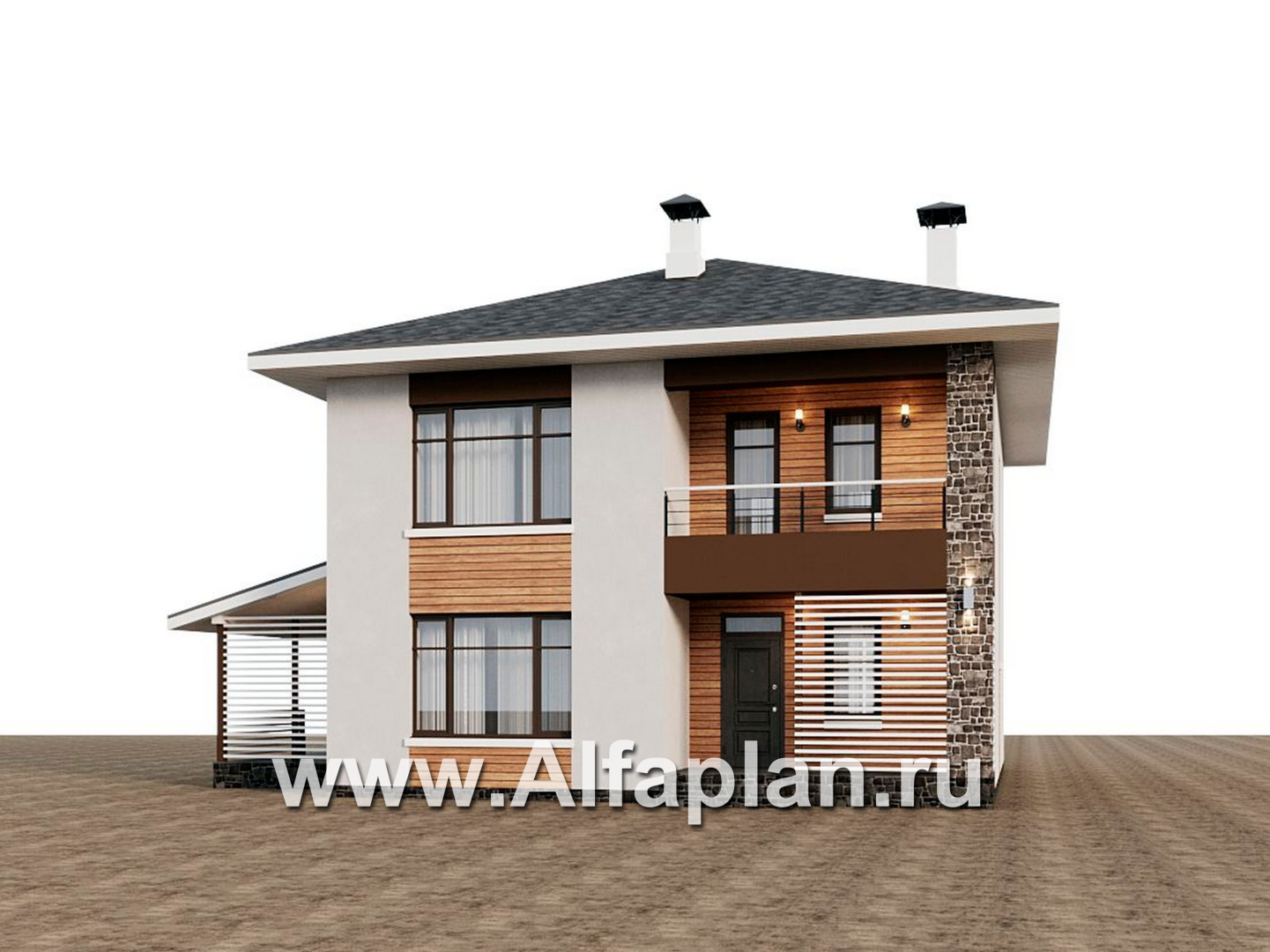 946A «Ильмень» - современный проект двухэтажного дома из кирпичей, с террасой на боковом фасаде