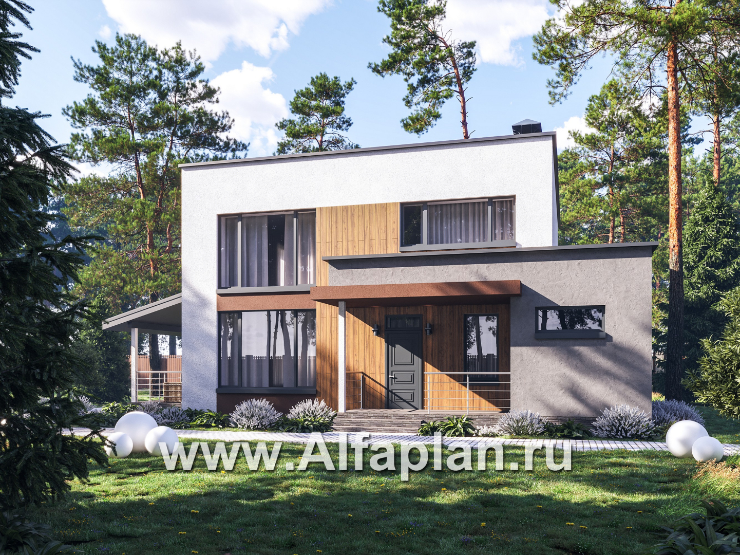 754A «Коронадо» - проект дома, 2 этажа, с террасой сбоку и плоской крышей, мастер спальня, в стиле хай-тек