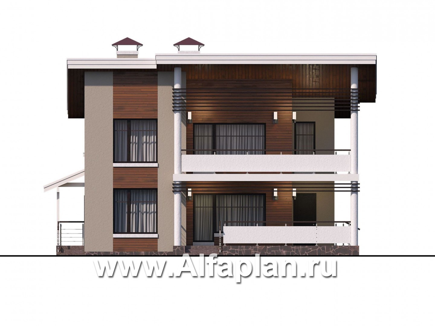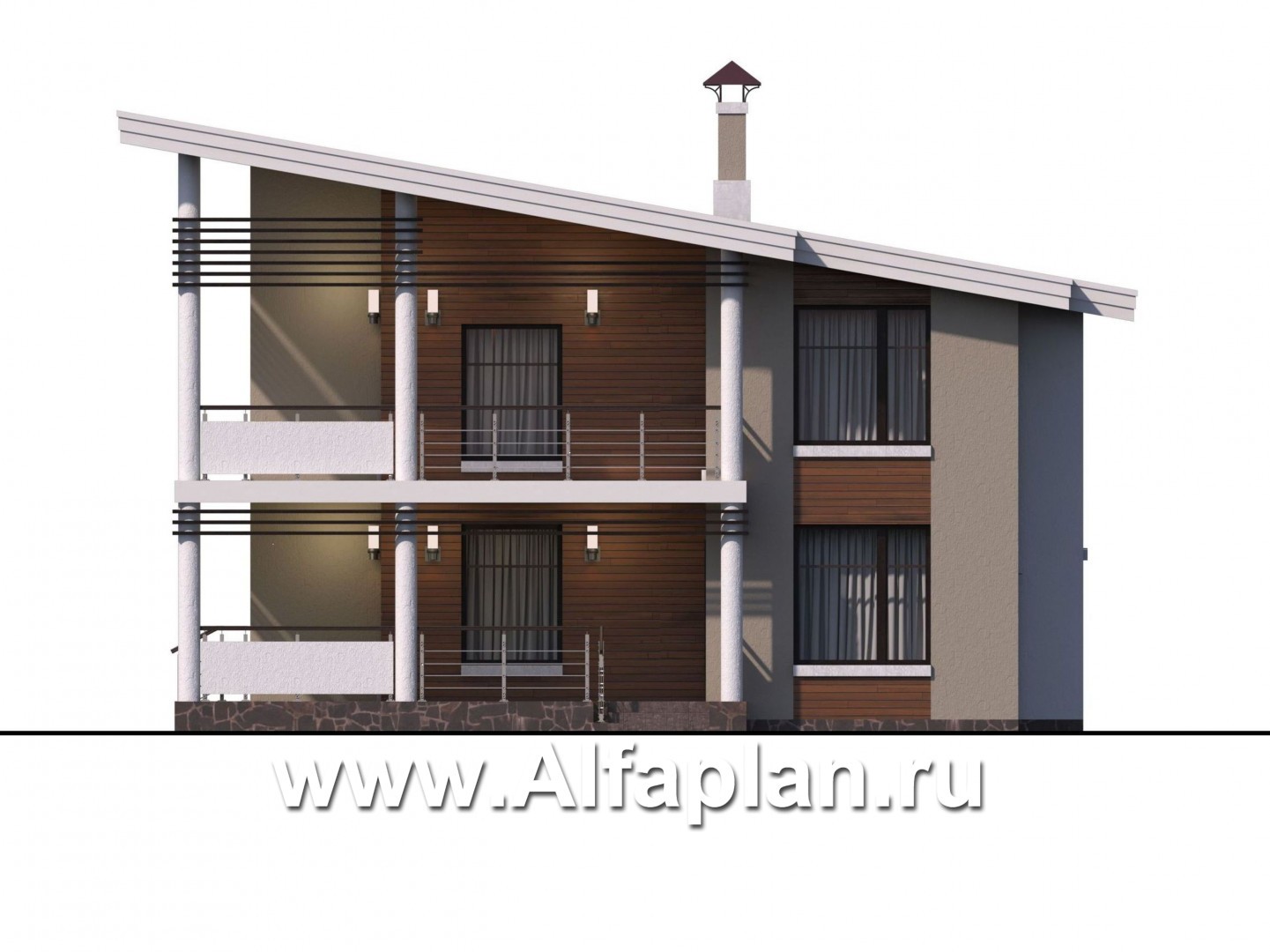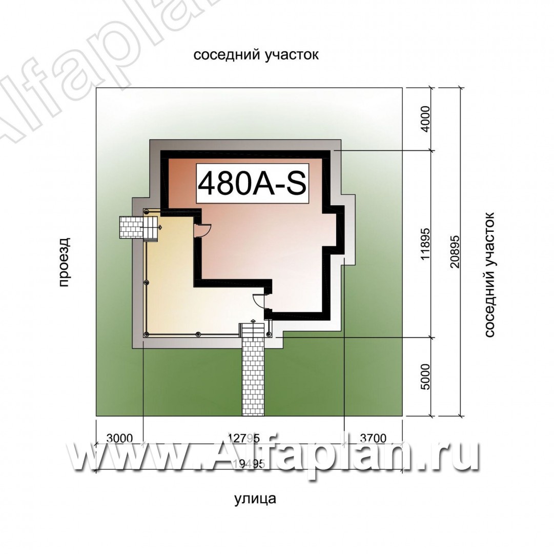 480A-S «Квантум» - проект двухэтажного дома с угловой террасой, с односкатной крышей, в стиле хай-тек